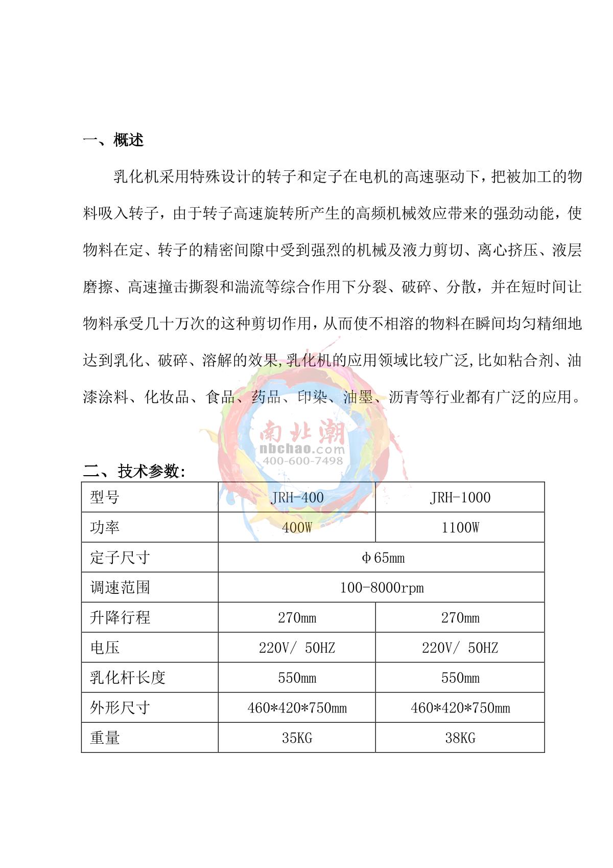 - 6HuXi HR-500/8G High Shear Dispersion Mulser Manual