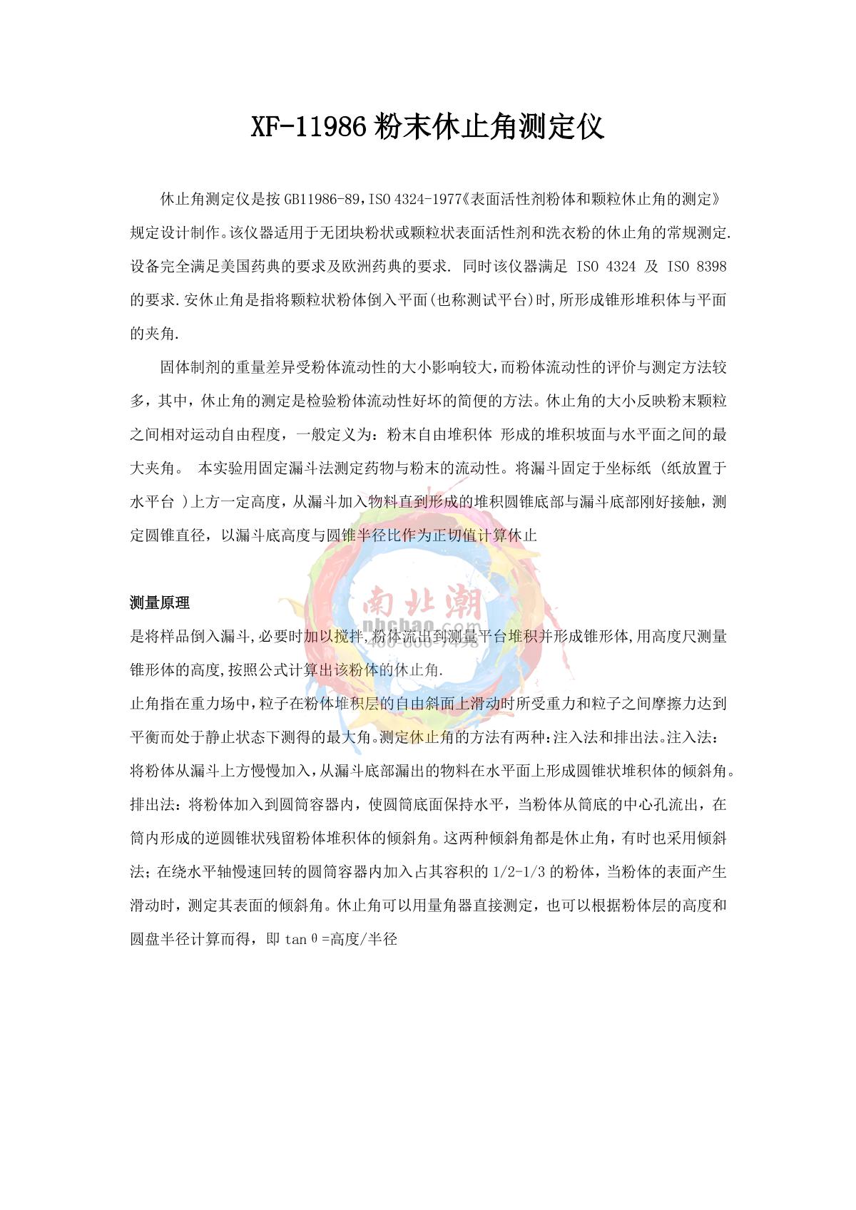 XIONGFA XF-11986 Powder Carr Angle of Repose Tester brochure