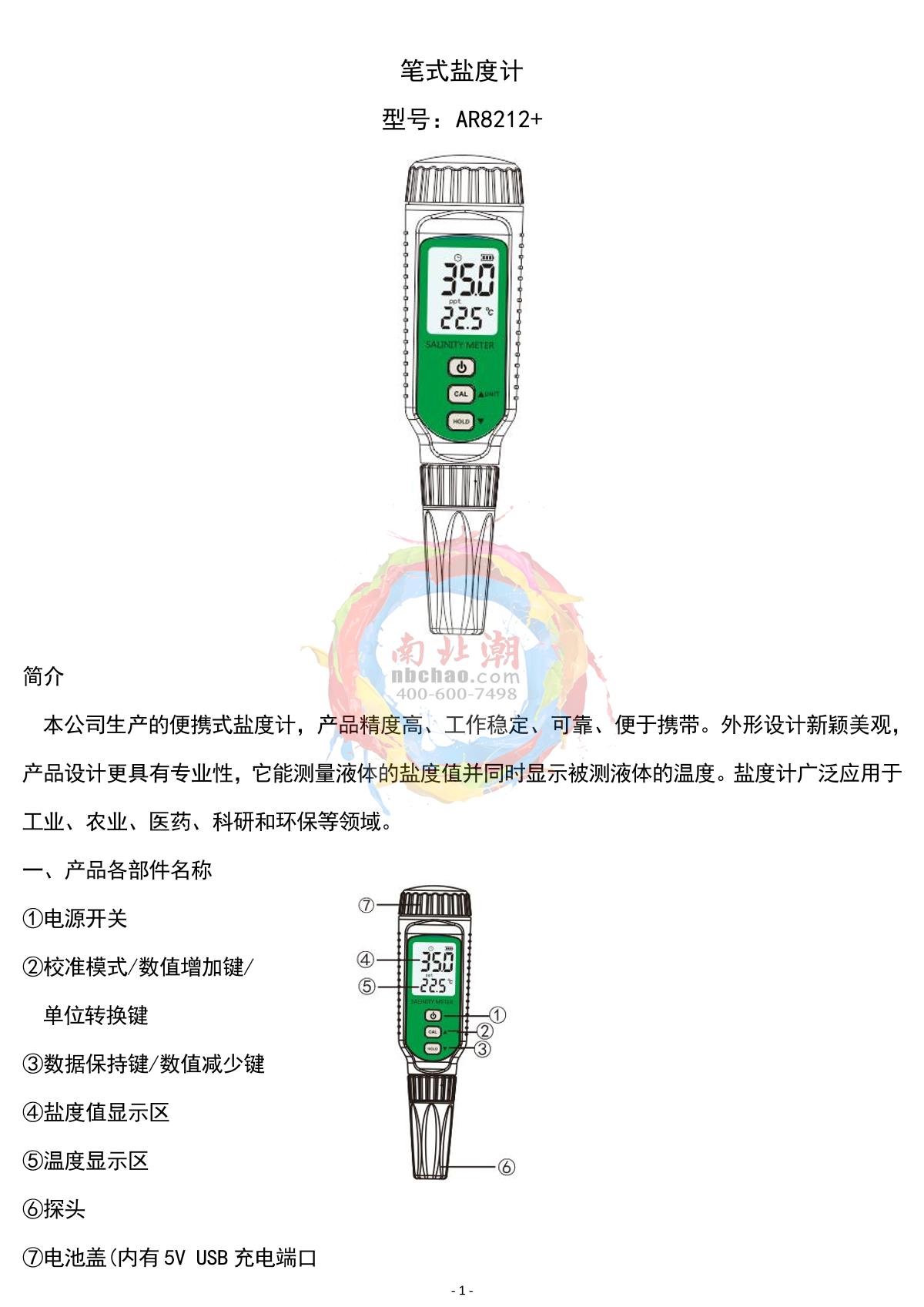- 1SMART SENSOR AR8212+ Pen Salinometer Manual