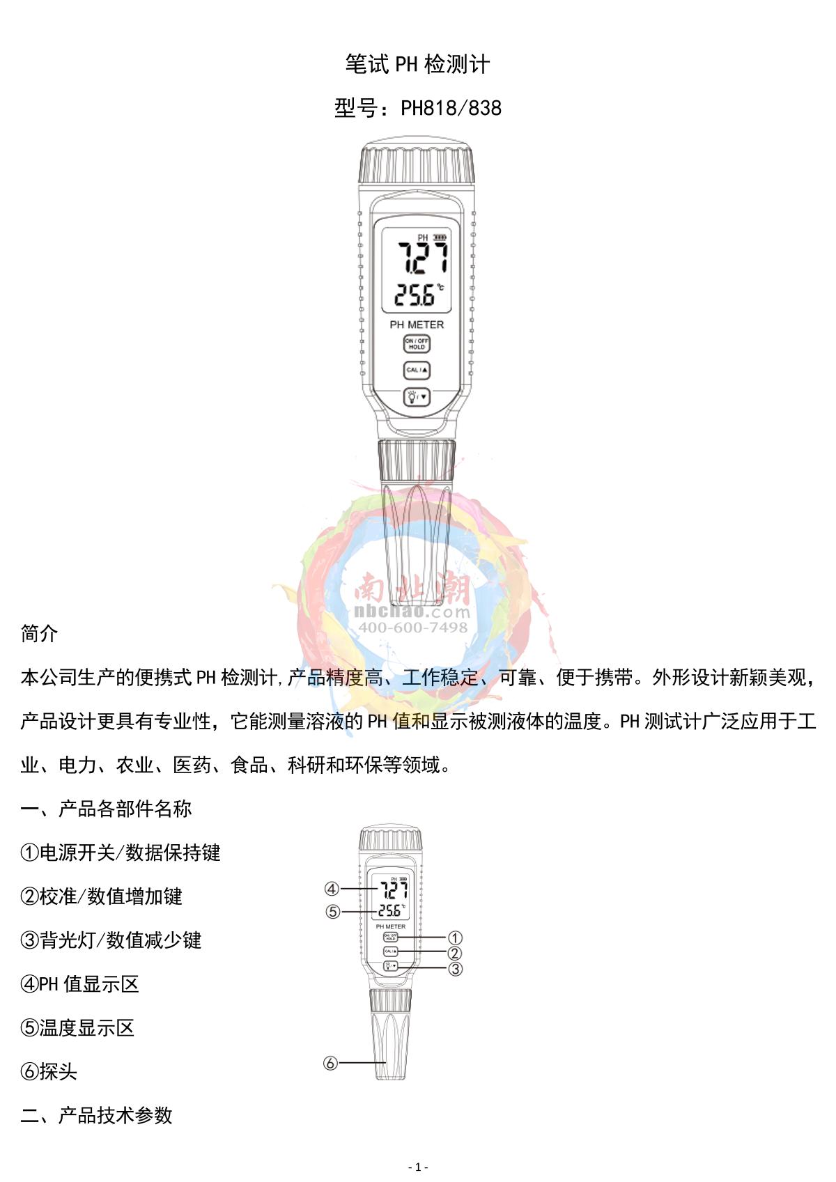 SMART SENSOR PH818 Pen pH meter Manual,OI