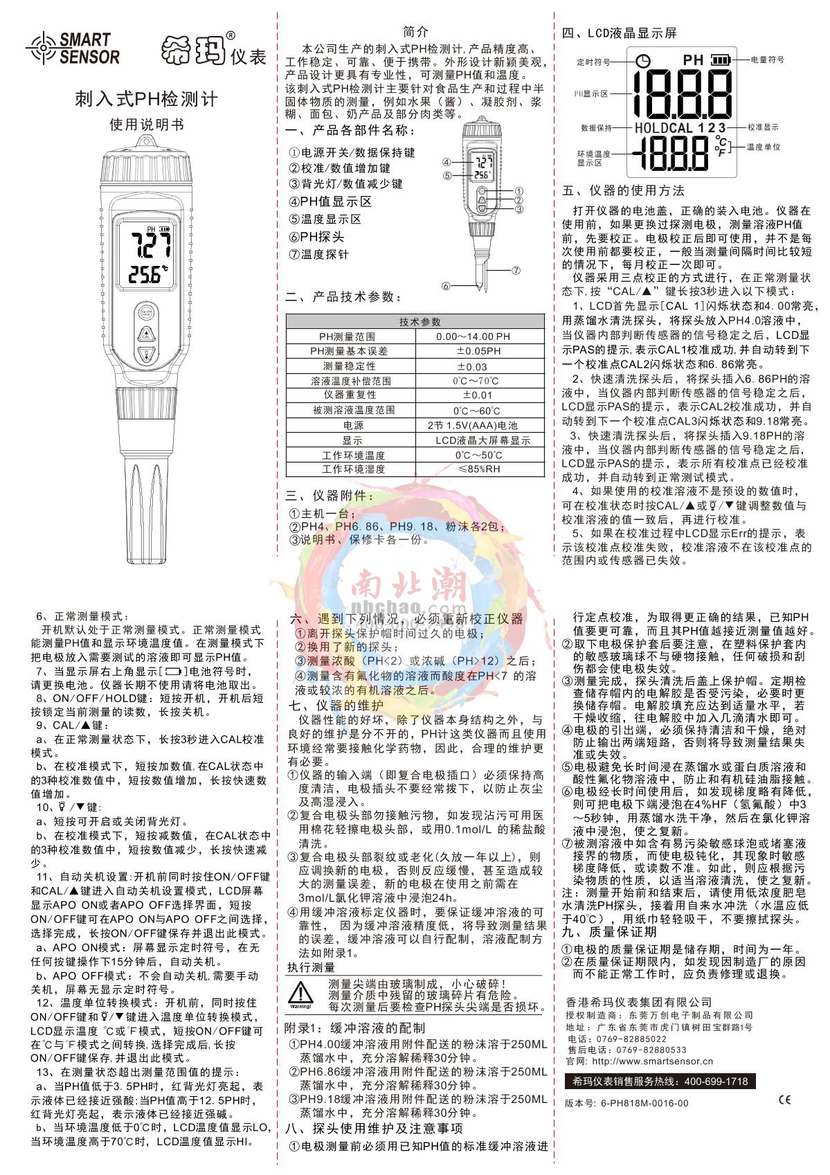 SMART SENSOR PH818M Pen pH meter Manual,OI