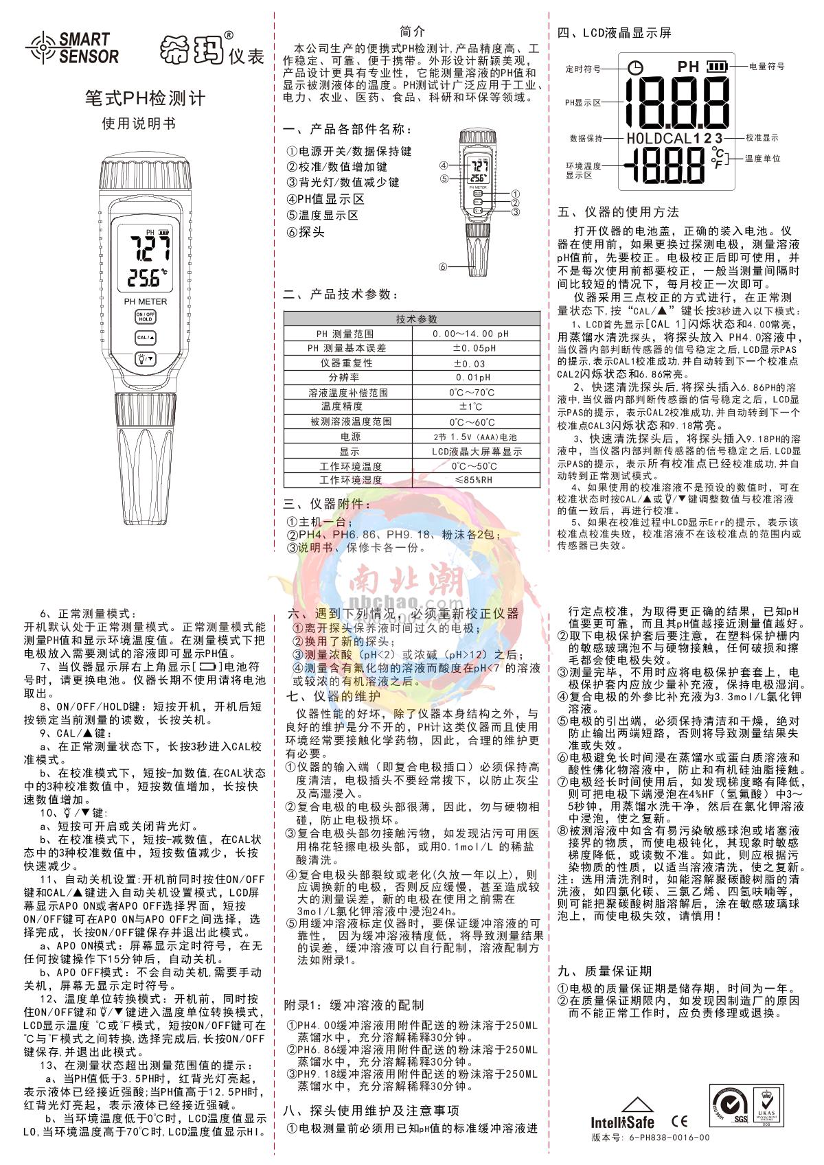 SMART SENSOR PH838 Pen pH meter Manual,OI