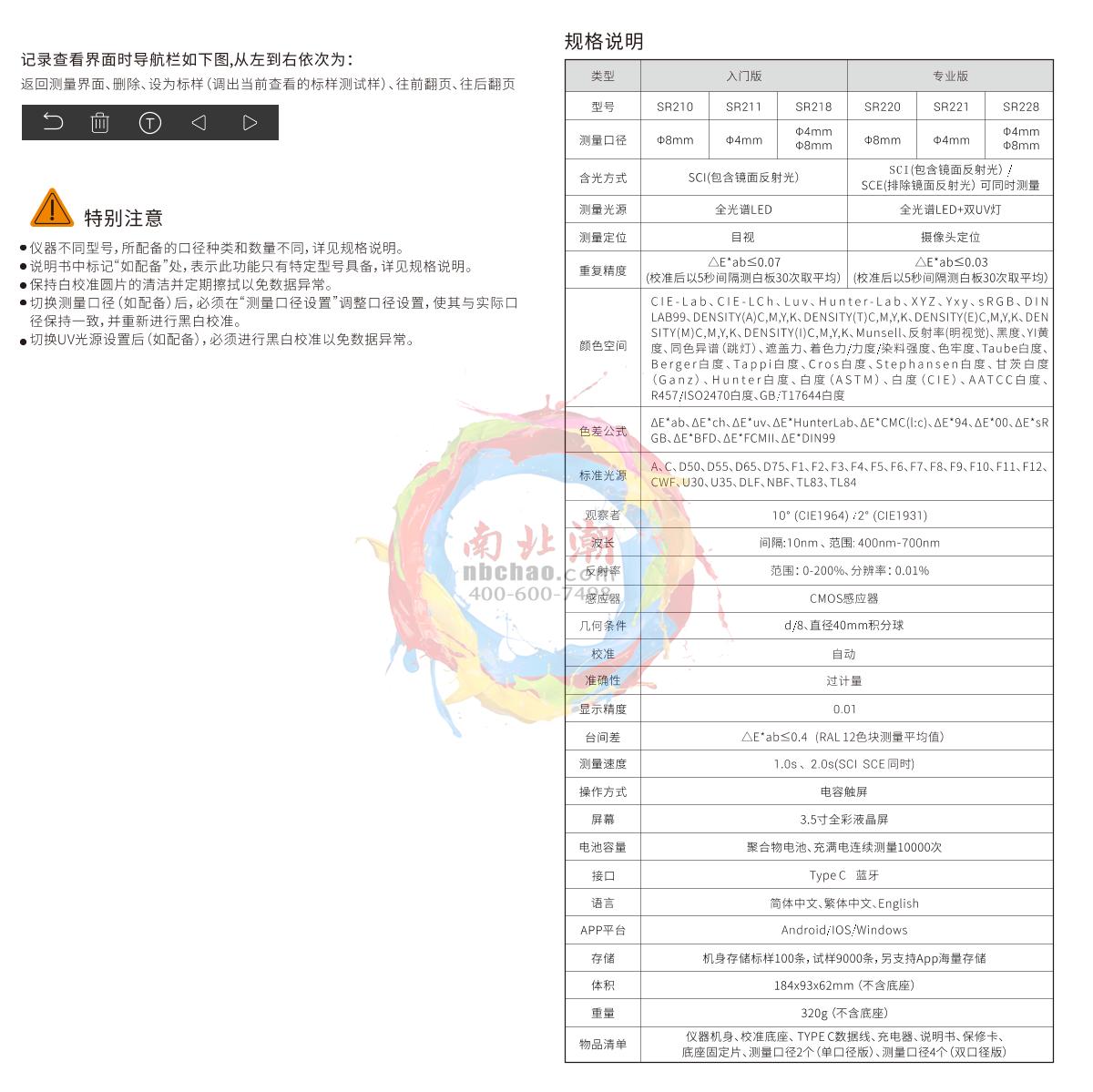 3NH TS8210 Portable Desktop ColorimeterD/8 (diffuse illumination, 8 ° direction reception); SCI/SCE measurement; exclude UV measurement; comply with standards CIE No.15, GB/T 3978, GB 2893, GB/T 18833, ISO7724-1, ASTM E1164, DIN5033 Teil7F40mmLight spectrum LED light sourceSE -