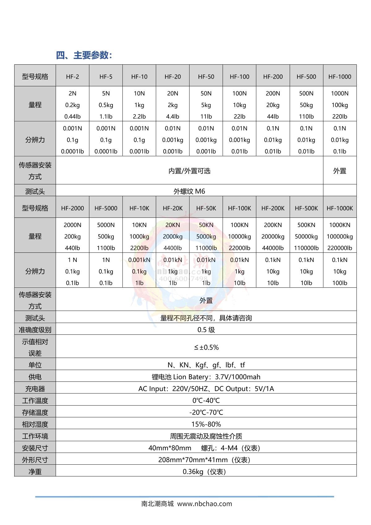 - 4HBO HF-1000K Force Gauge (Digital Display) brochure