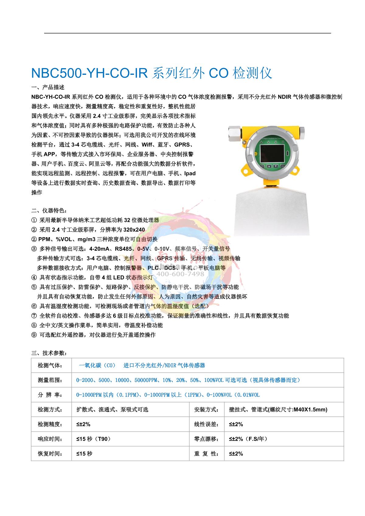 KORNO NBC500-YH-CO-IR(0-2000ppm) Infrared CO Detector brochure