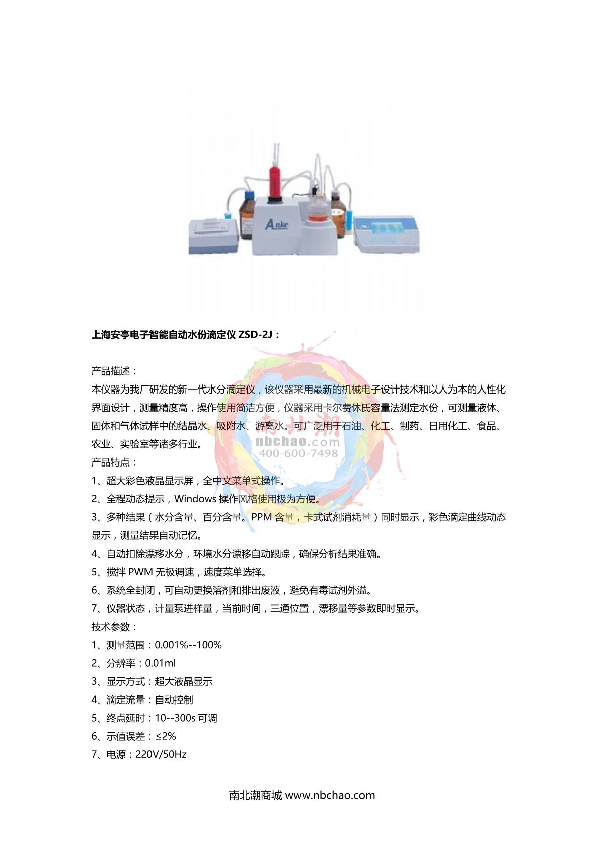 - 7anke ZSD-2J Automatic Moisture Titrator brochure