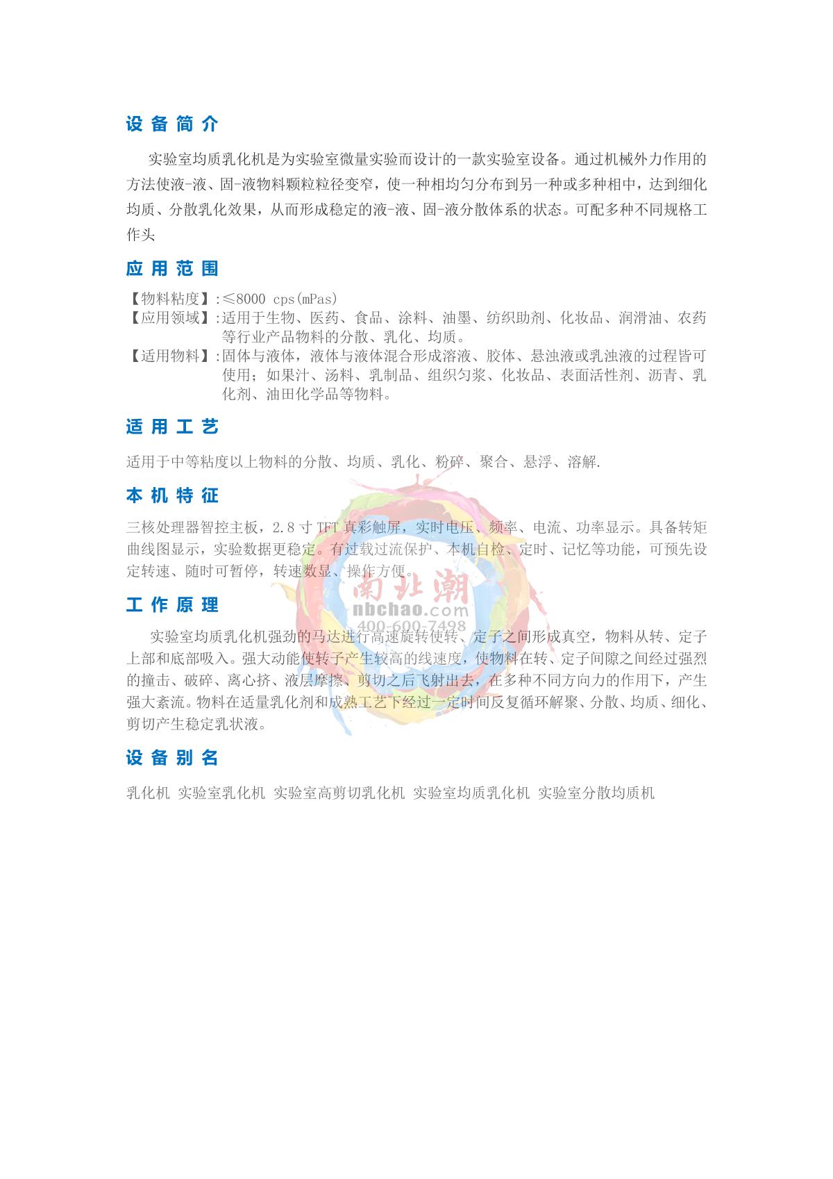 MuXuan ZN800-90 Laboratory Disperse Homogeneous Mulser brochure