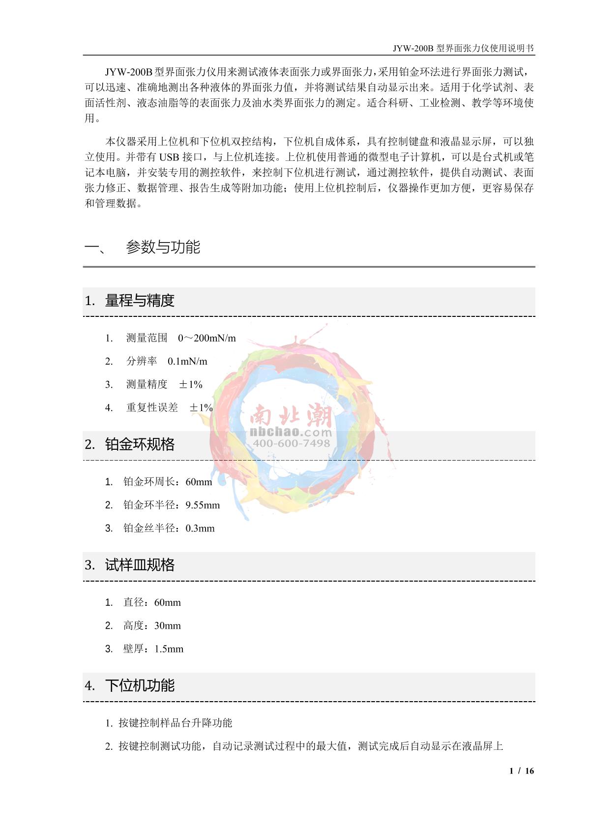 HuiNuo JYW-200B Automatic interfacial tensIon Meter Manual,OI