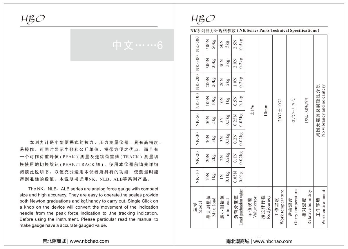 HBO NK-200 Force Gauge (Pointer) Manual,OI