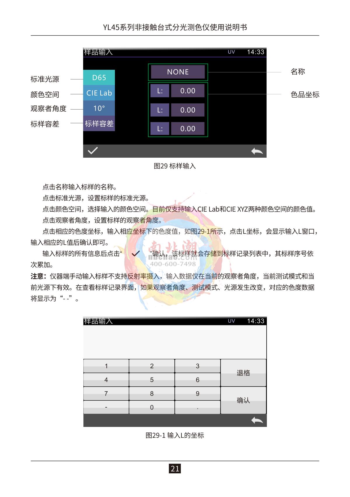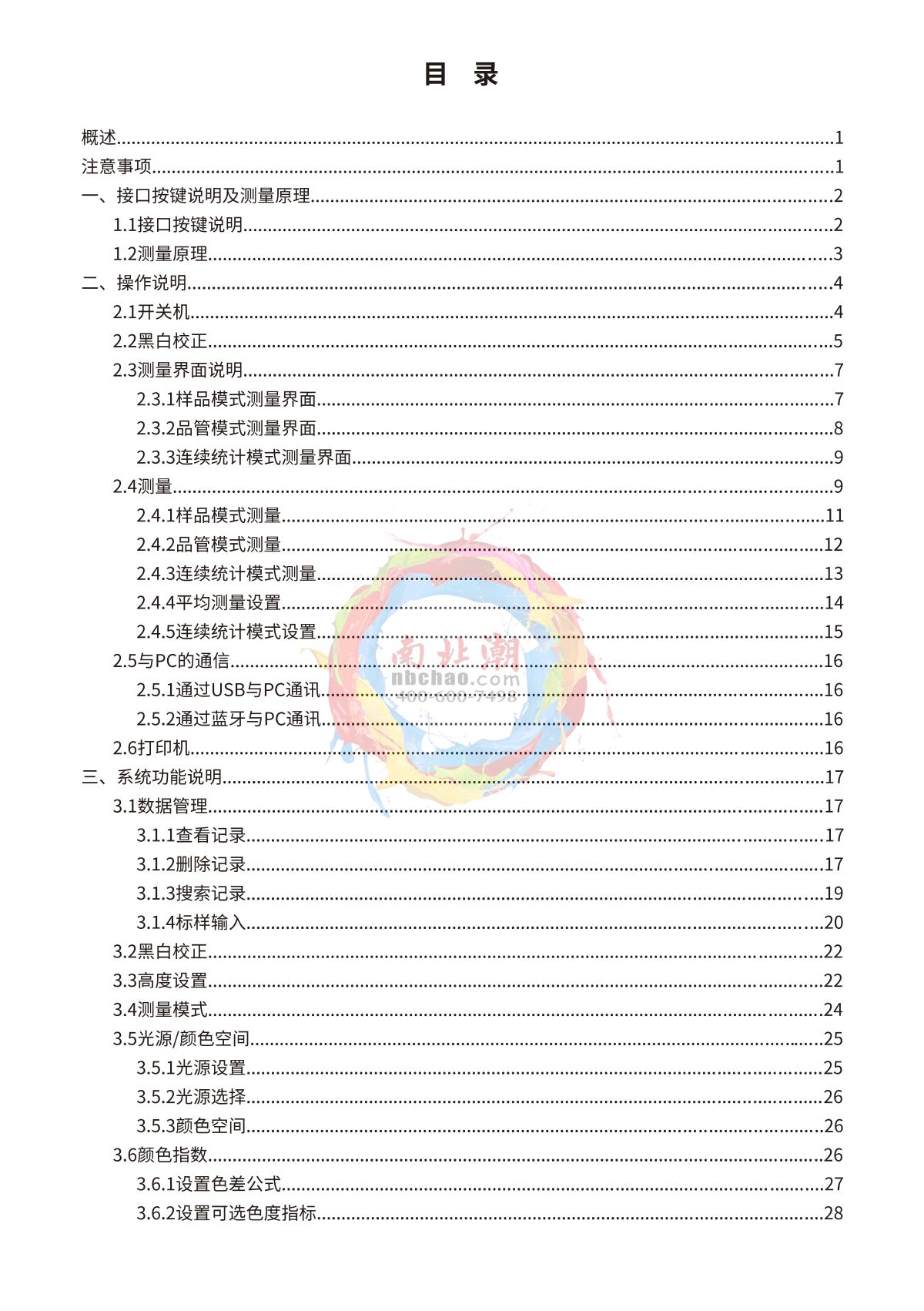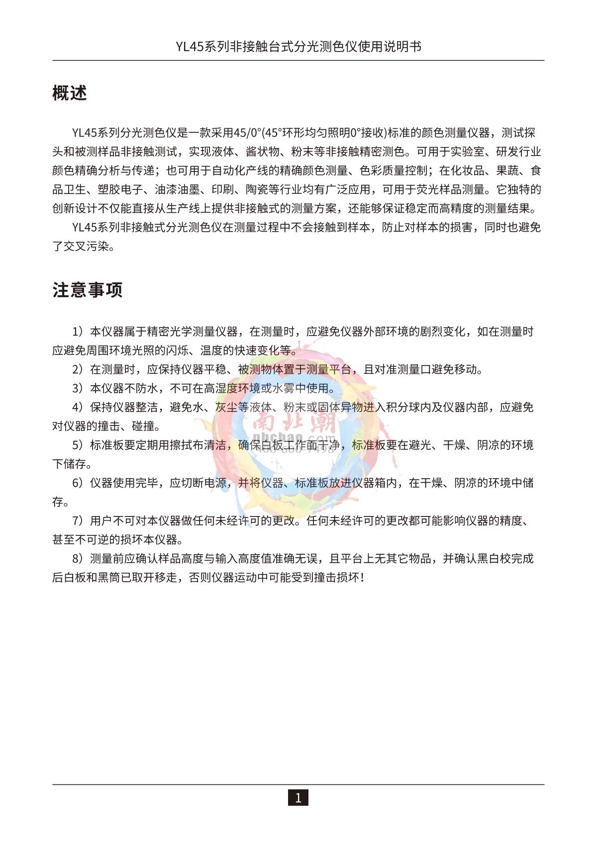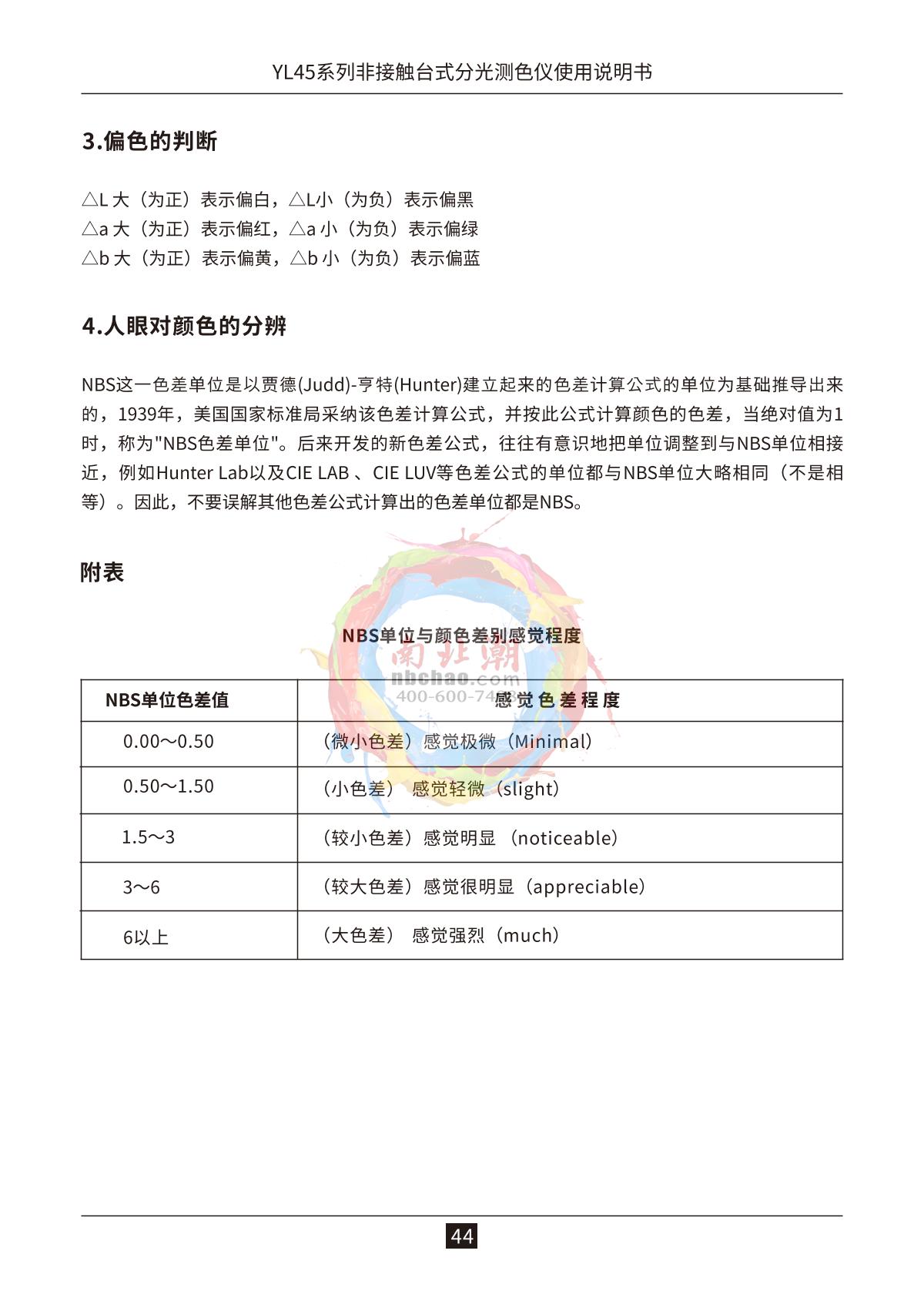 3NH YL4520 Non-contact Colorimeter Manual,OI