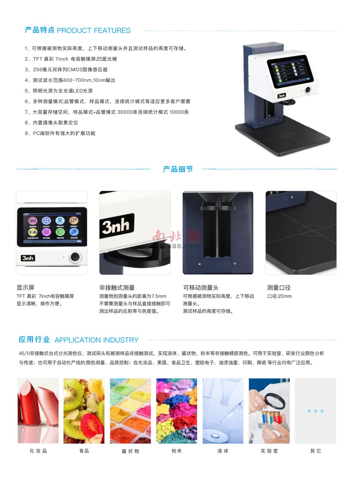 3NH YS Series Multifunctional Test ComponentsYS Series SpectrophotometerHigh concentration liquid reagents, sauces (such as ketchup, Coating), powder (such as coffee) and other samples of reflection color measurementSE -