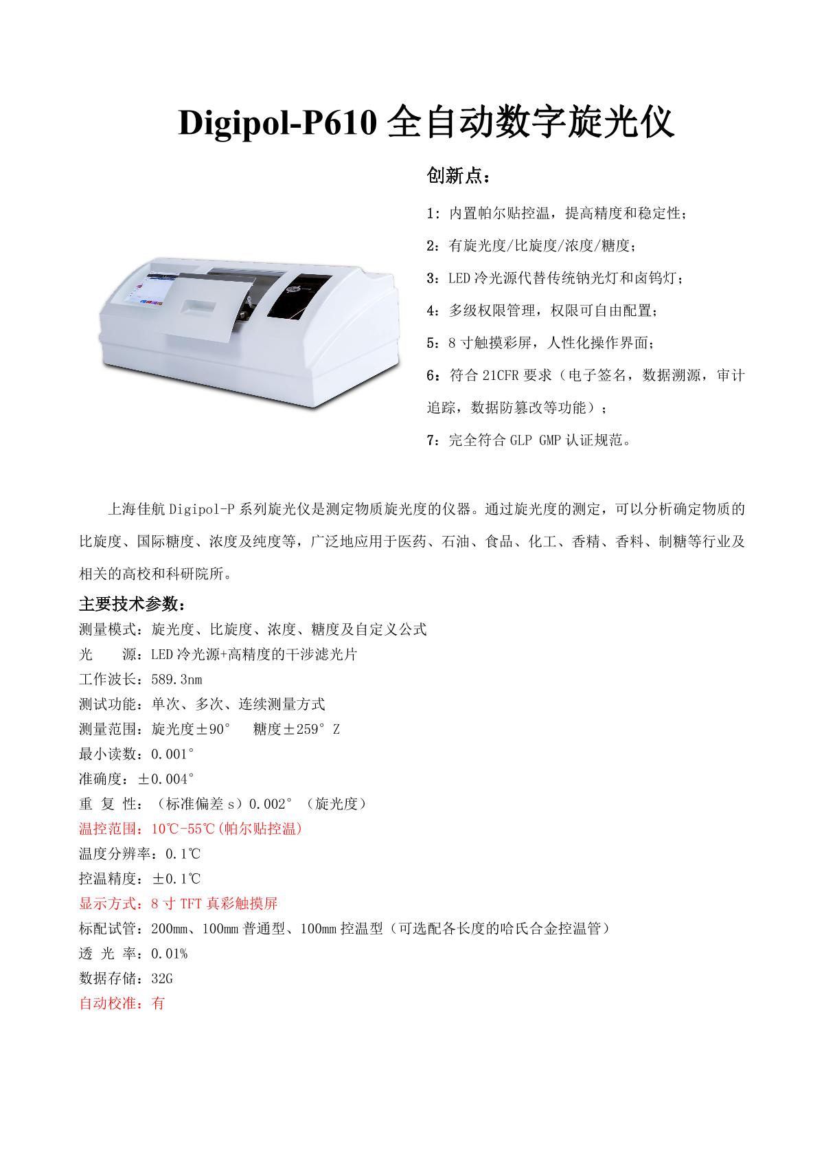 JIAHANG Digipol-P610 Automatic Digital Polarimeter brochure