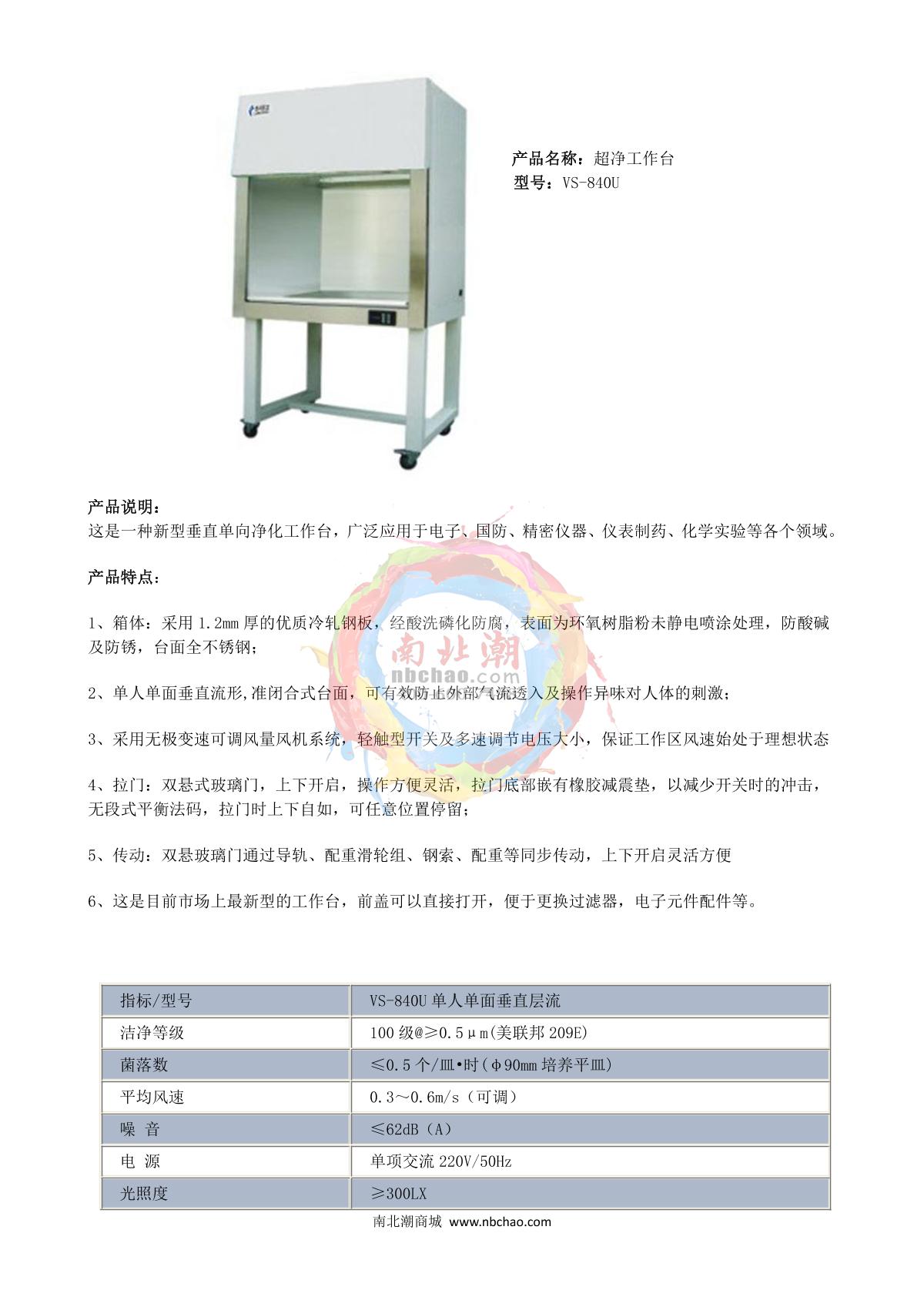 SuJie VS-840U Clean workbench (Single-Sided, Single Operator) brochure
