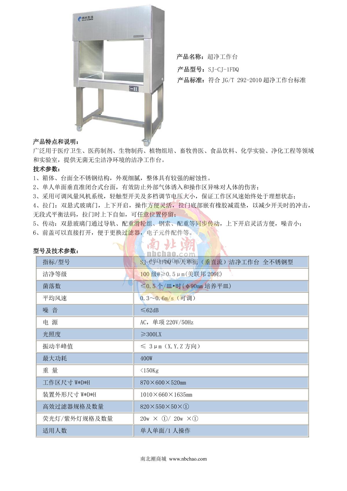 SuJie SJ-CJ-1FDQ Clean workbench (Single-Sided, Single Operator) brochure