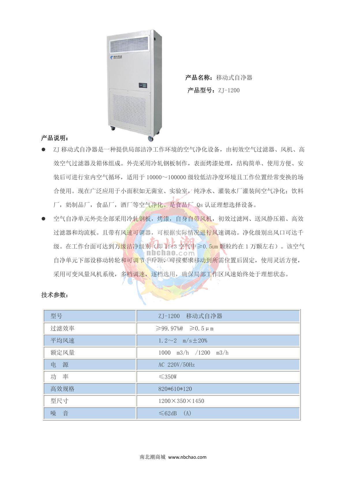 SuJie ZJ-1200 Mobile air purifier brochure