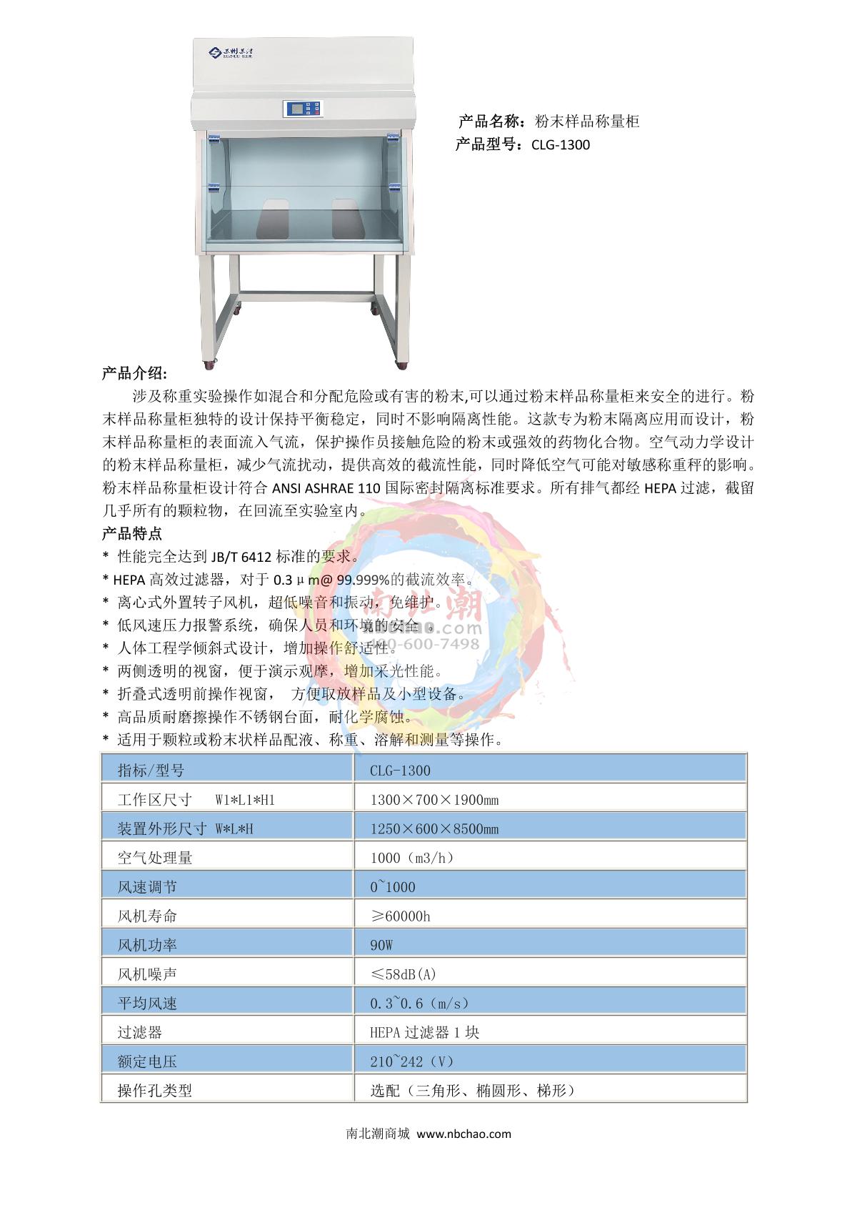 SuJie CLG-1300 Weighing Room/Weighing Hood brochure