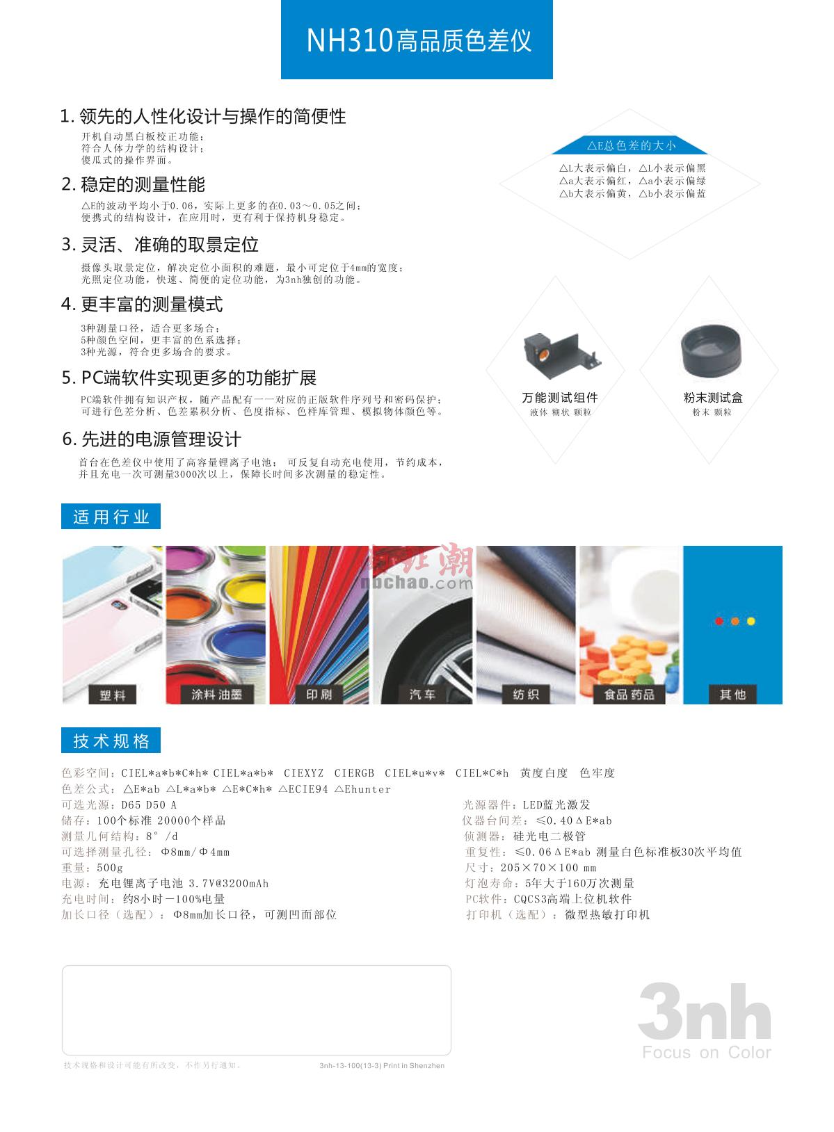 3NH NH310 + Multifunctional Test Component Colorimeter brochure