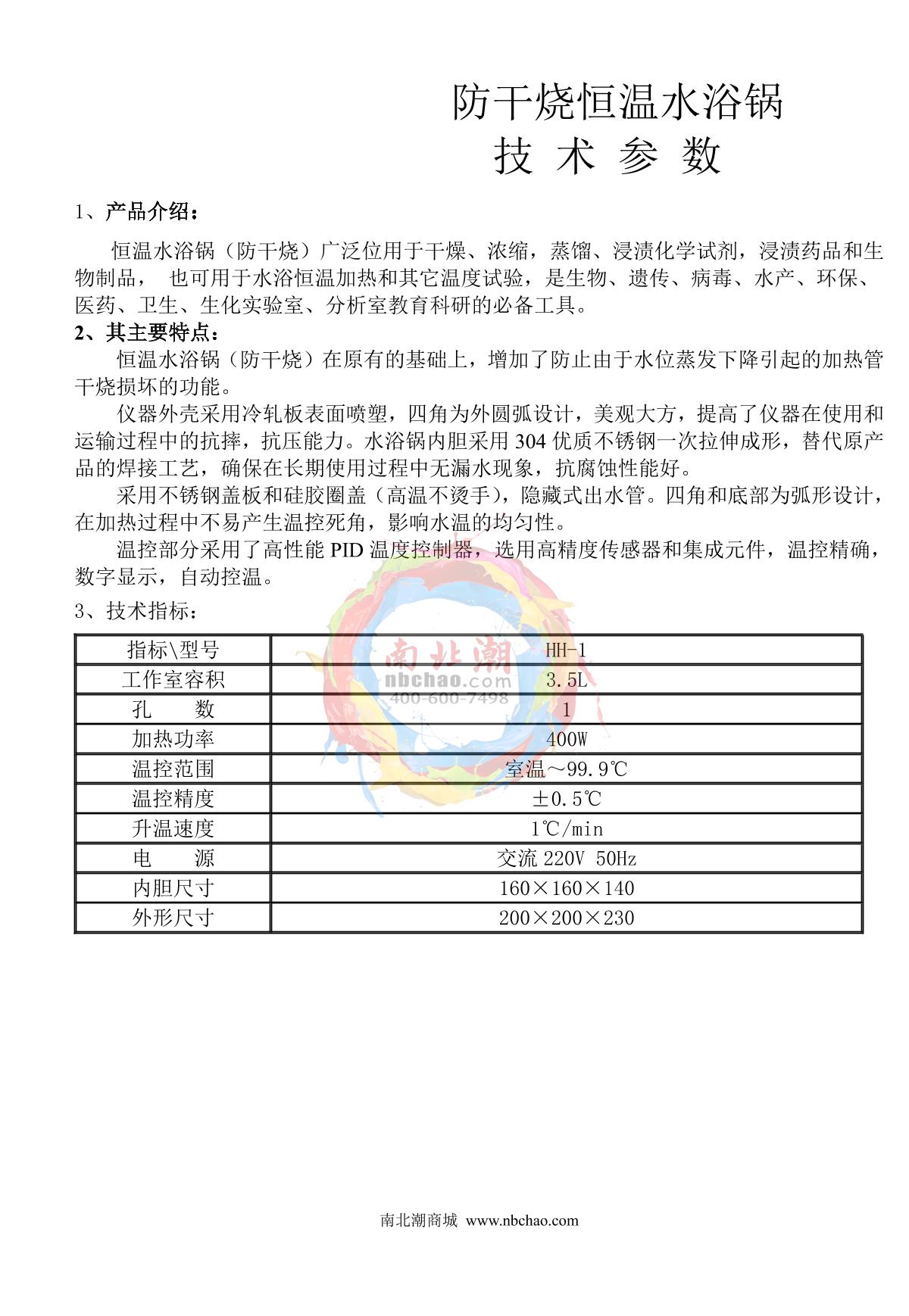 HongHua HH-1 Anti-dry burning constant temperature Water Bath brochure