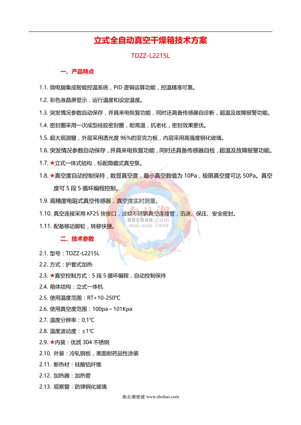 TaiSiTe TDZZ-L2215L Vertical Electric Vacuum Oven brochure
