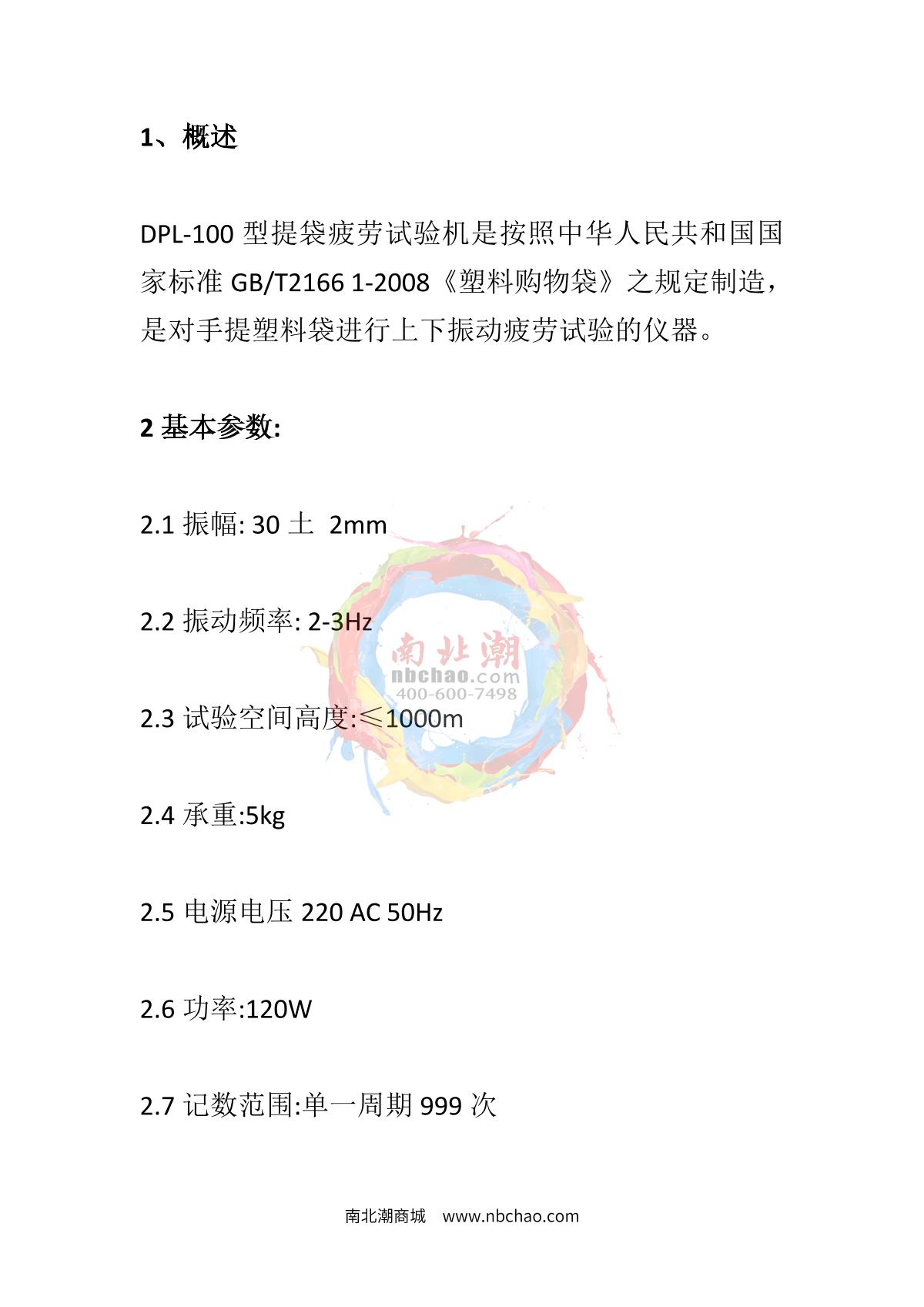 CHINA NBC-TL-500 bag fatigue testing machine 500MM30±2mm2-3 Hz (130 cycles per minute)500mm¥9210.0SE -