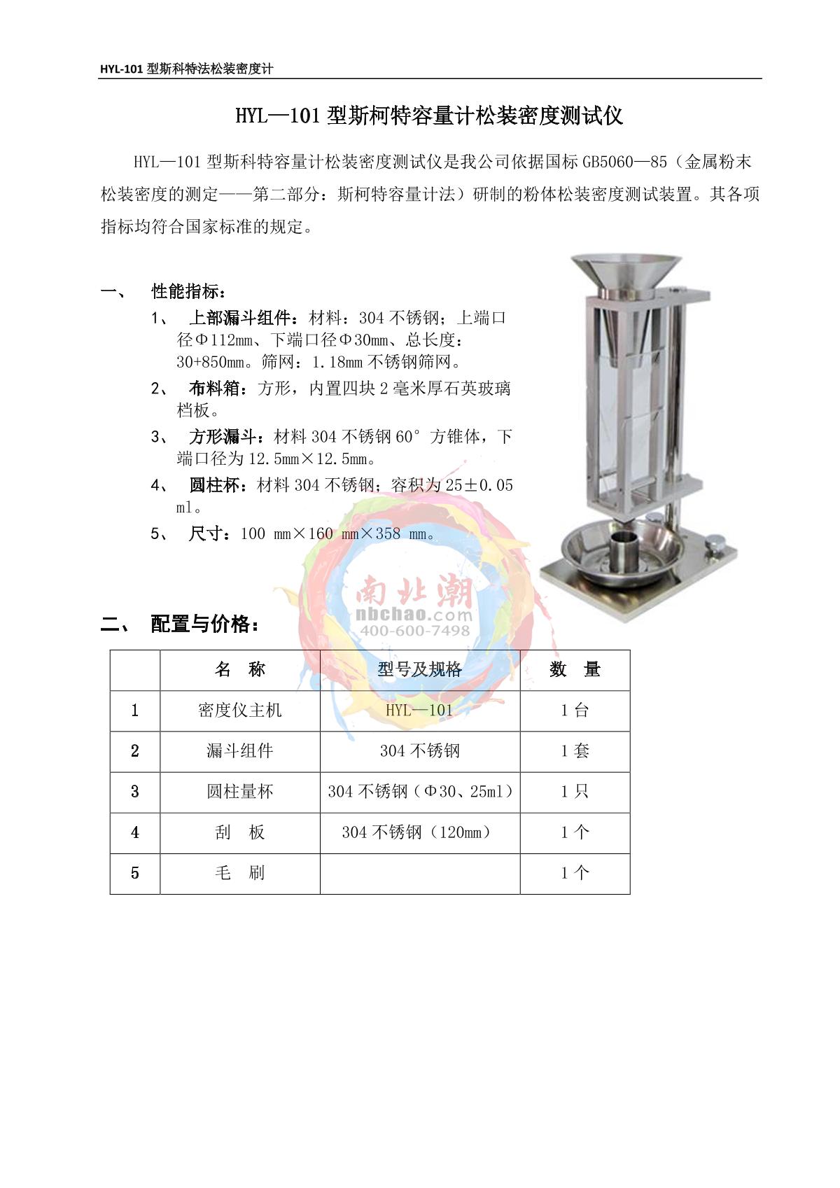 hylology HYL-101 Scott Volumeter Loose Density Tester brochure