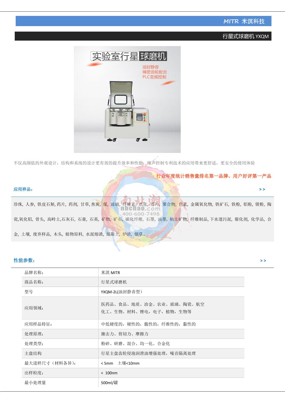 MiQi YXQM-2L Oil seal silent planetary Ball mill brochure