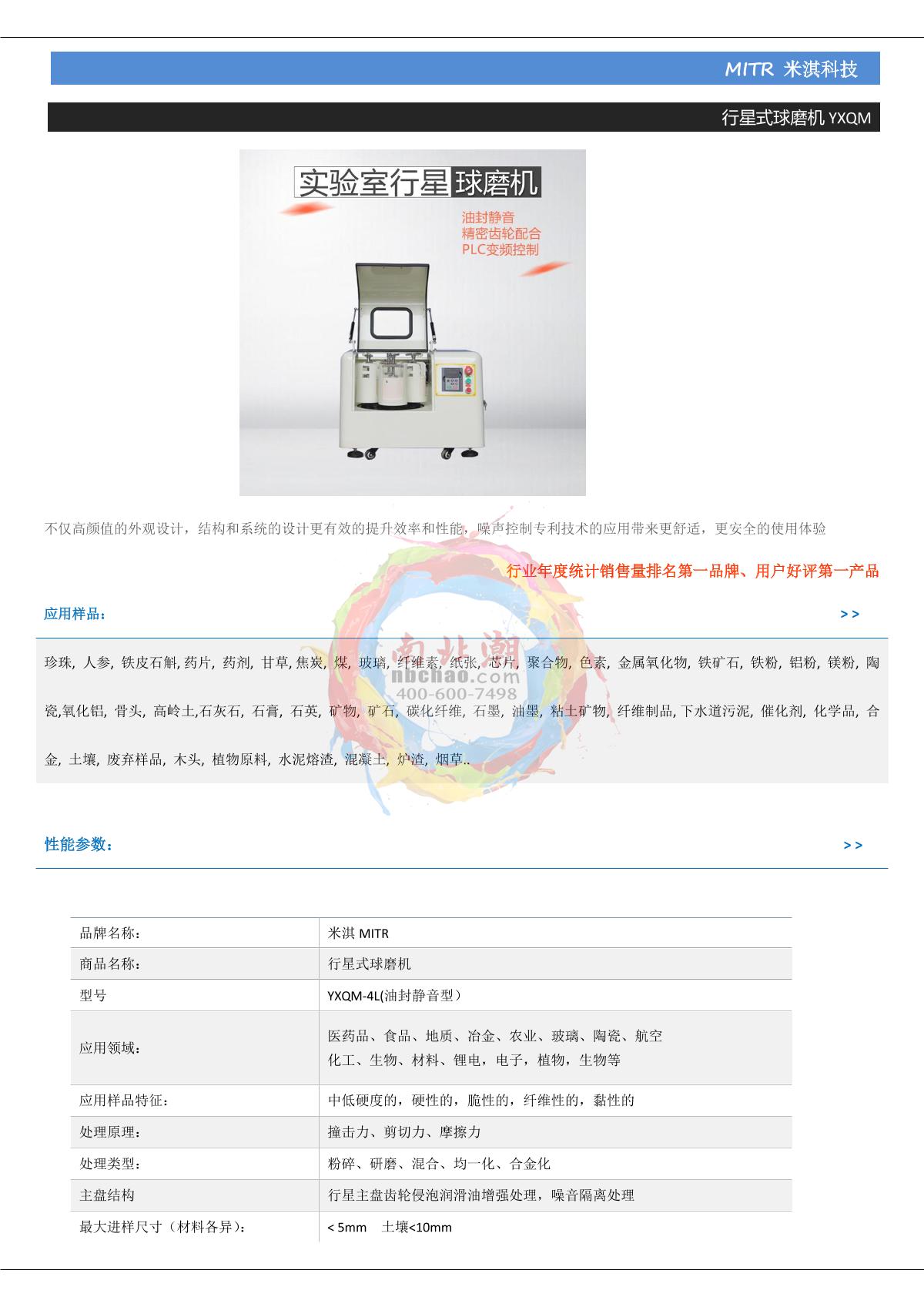 MiQi YXQM-4L Oil seal silent planetary Ball mill brochure