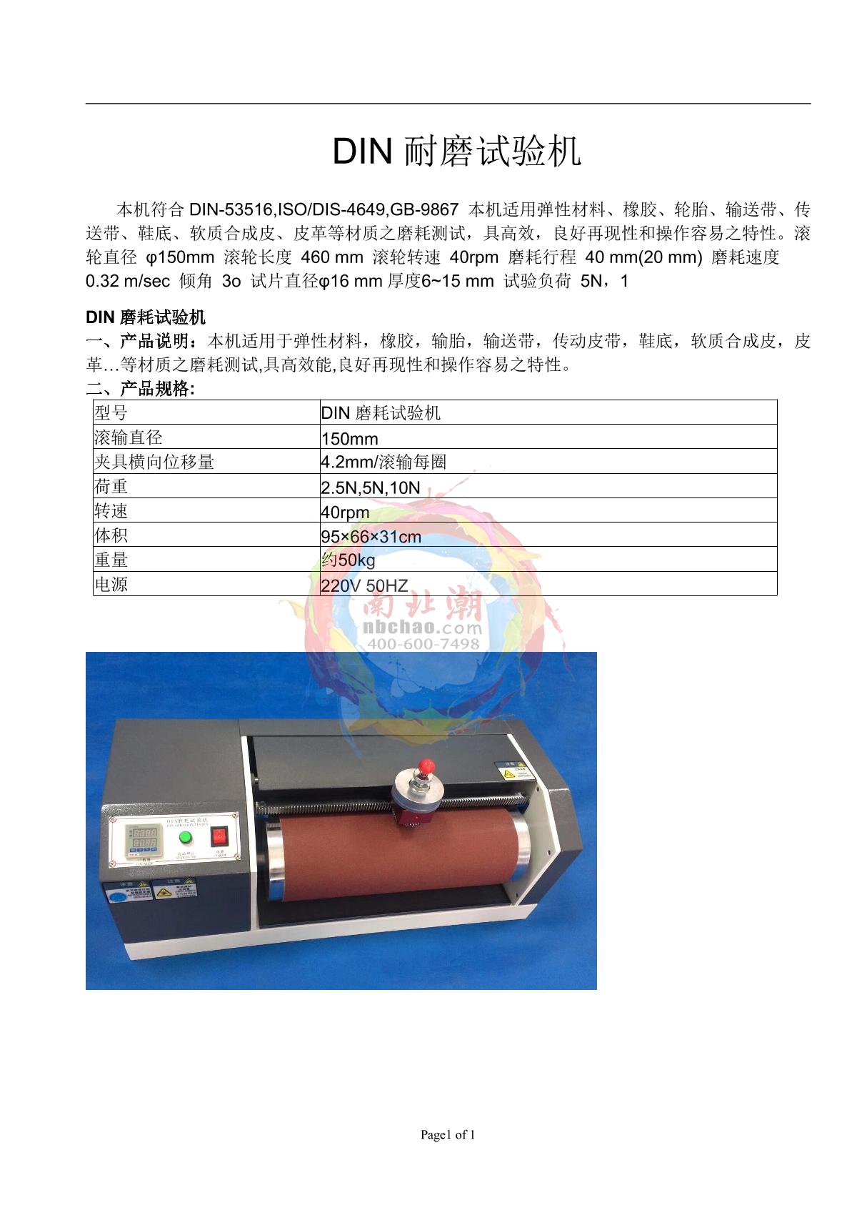 - 5HuiTai NBC-DIN DIN Wear testing machine brochure