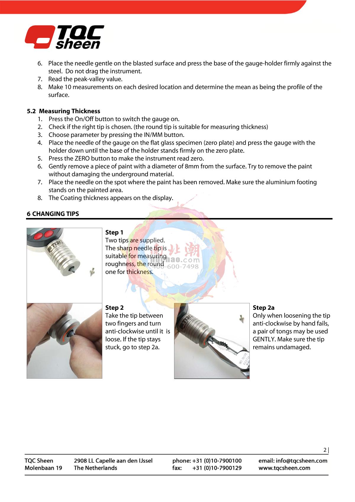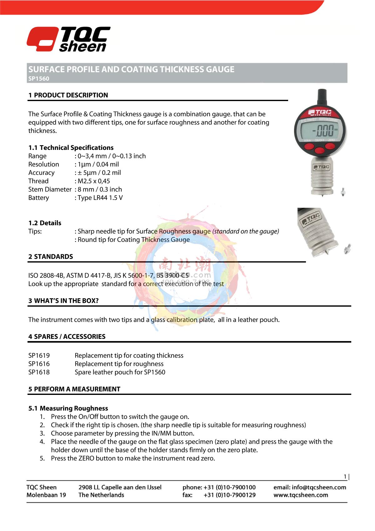 - 10TQC sheen SP1562 Coating Roughness Gauge Manual