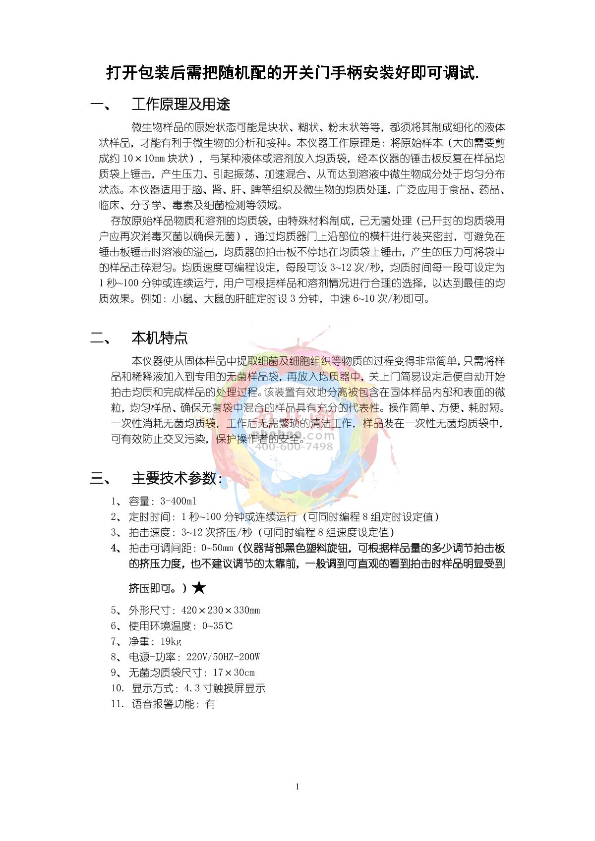 - 1RONGHUA RHJZQ-10JM Pat Sterile Homogenizer Manual