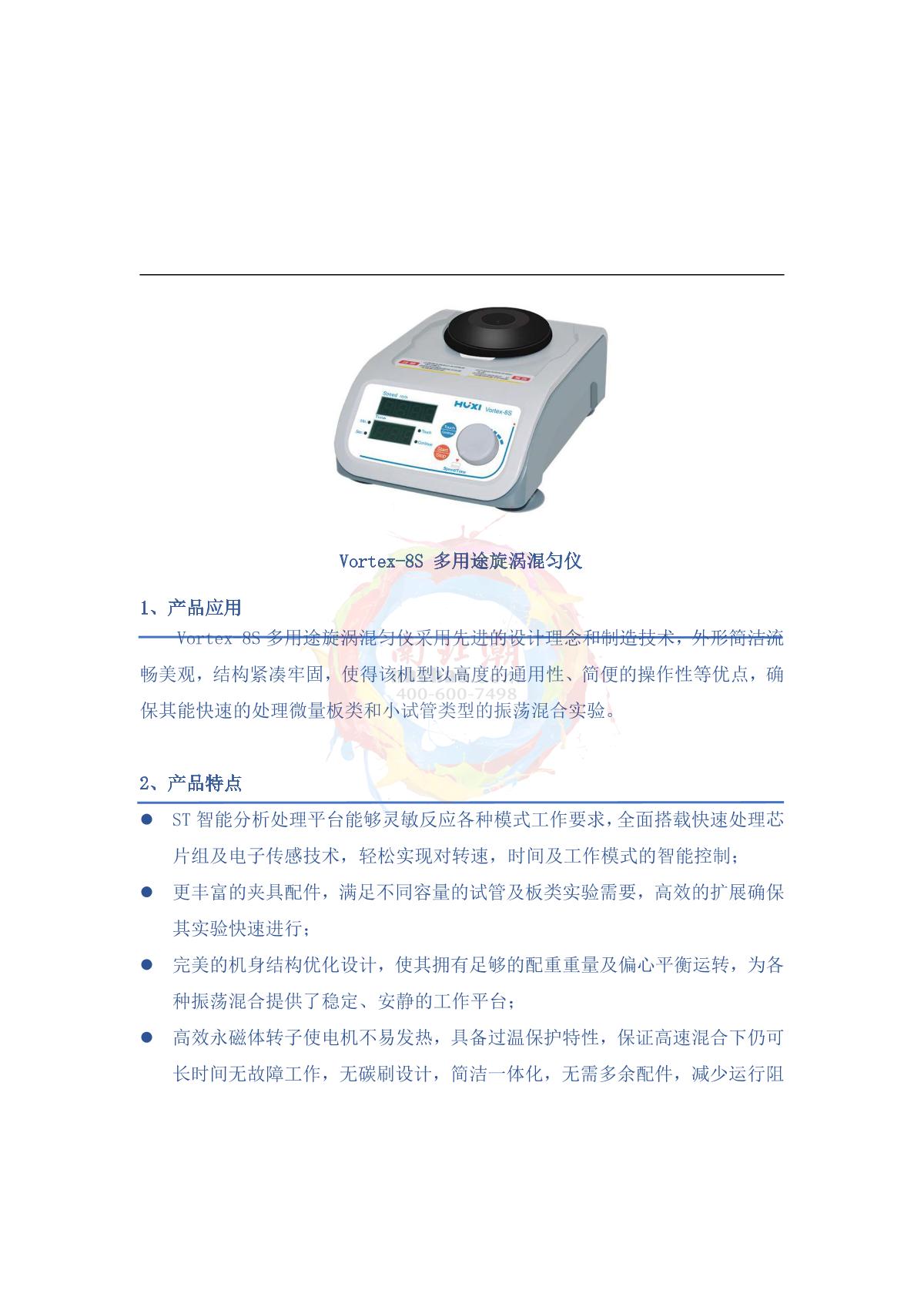 HuXi Vortex-8S Multipurpose Vortex Mixer brochure