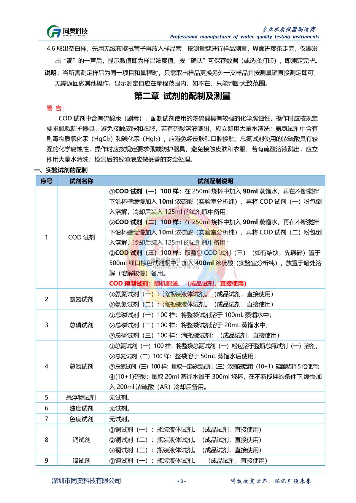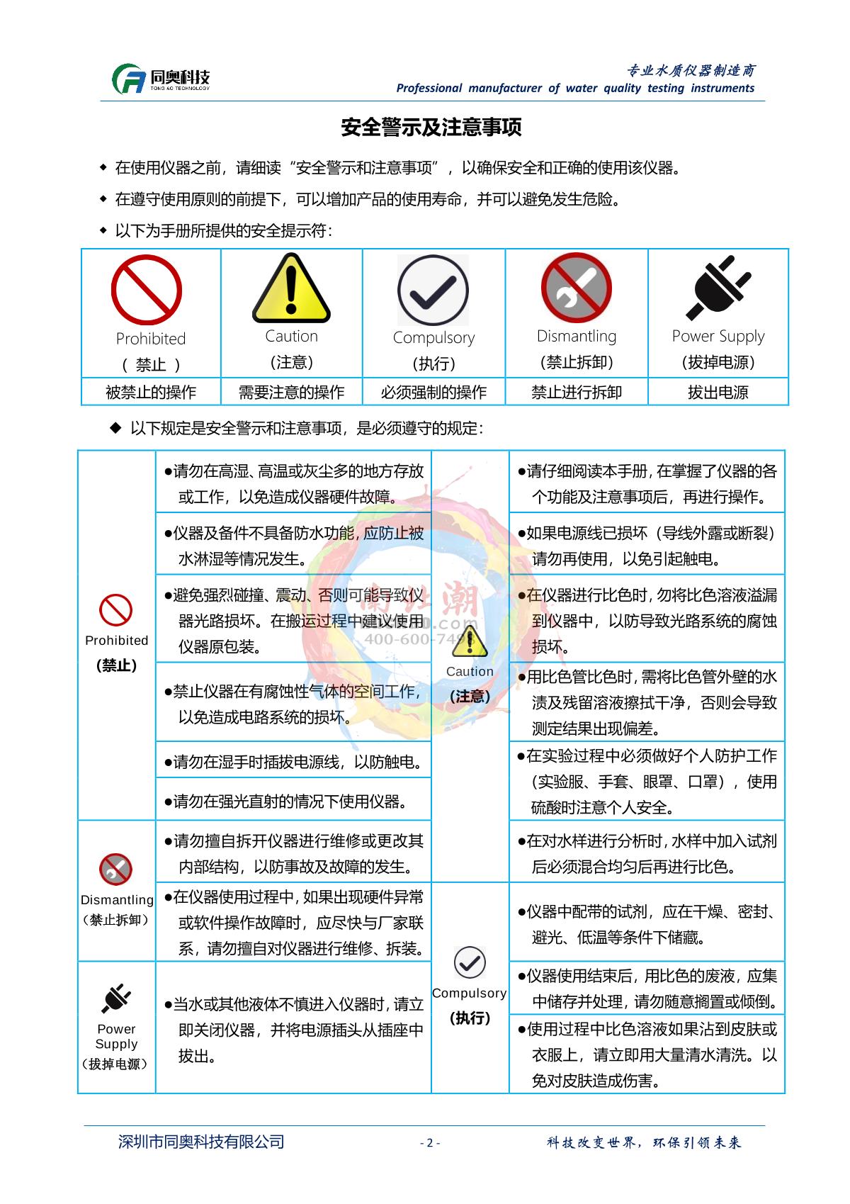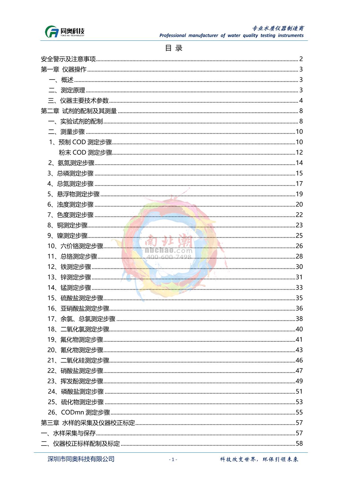 TongAo TR-900H Multiparameter Water Quality Analyzer Manual,OI