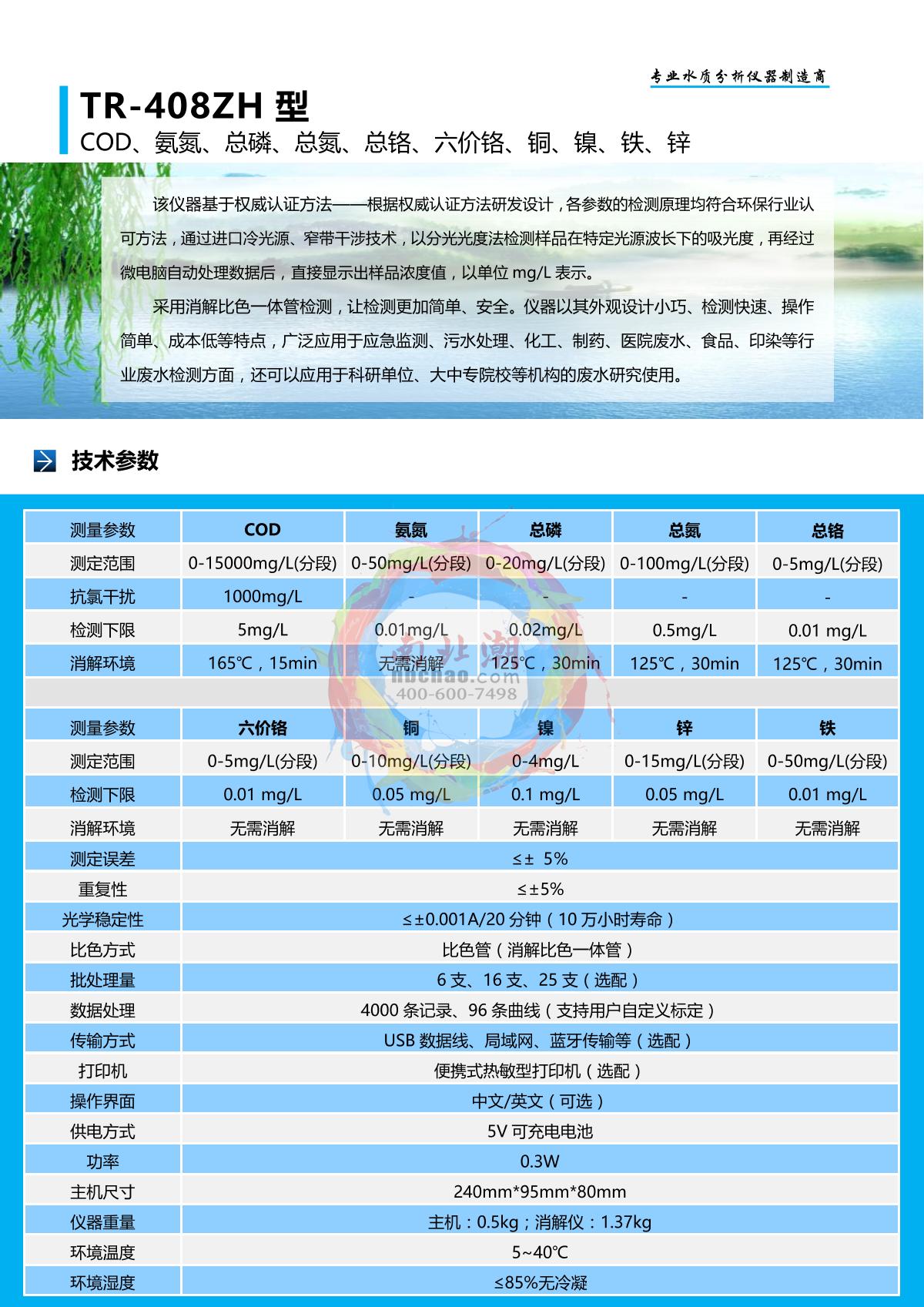 TONGAO TR 6900P Desktop Total Phosphorus STIP-scantotal phosphorus0~20mg/LGB 11893-89 "Water quality, determination of total phosphorus, ammonium molybdate Spectrophotometric method, specs-trophotometry"¥13200.0SE