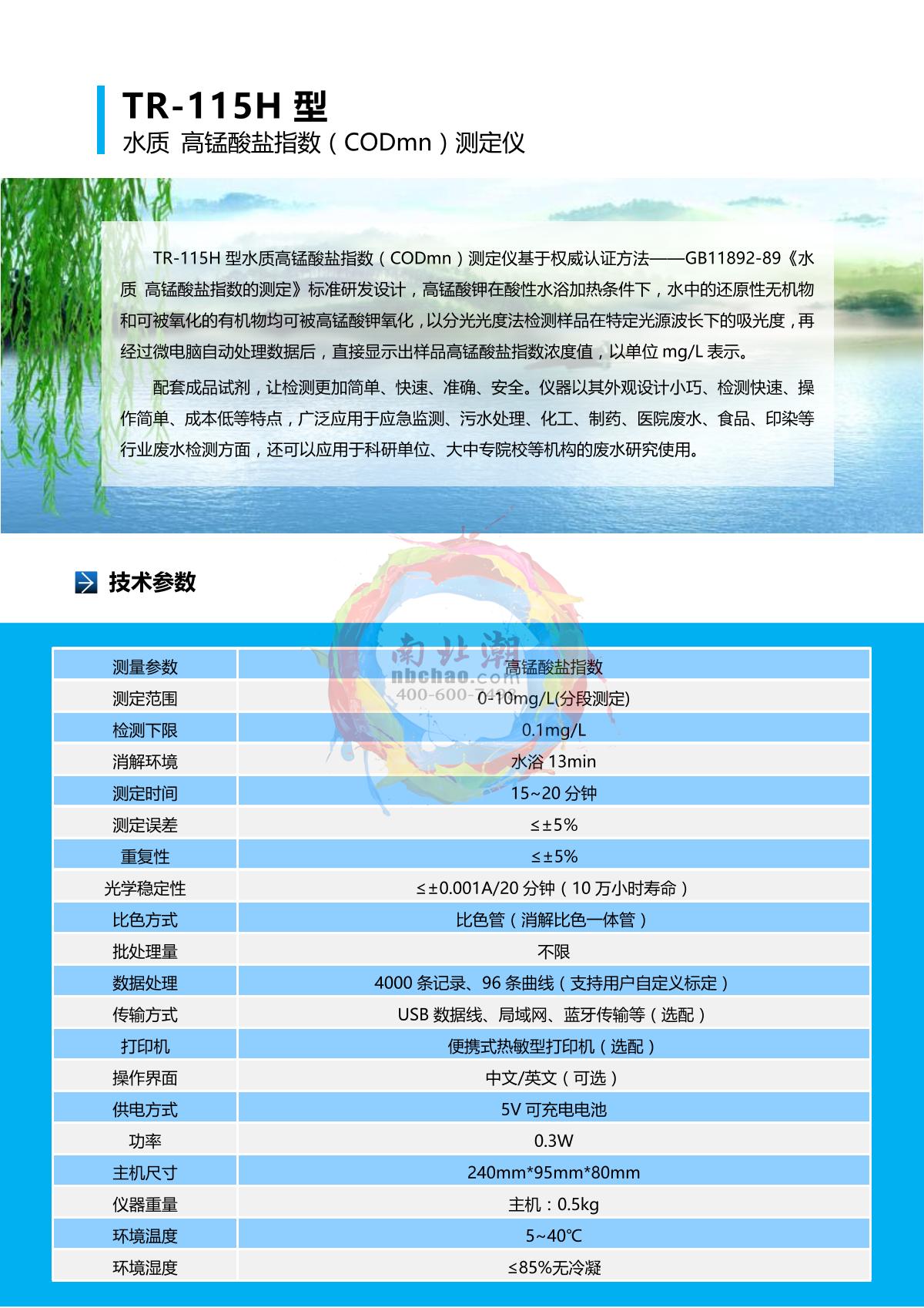 TongAo TR-115H Permanganate index (CODmn) Tester brochure