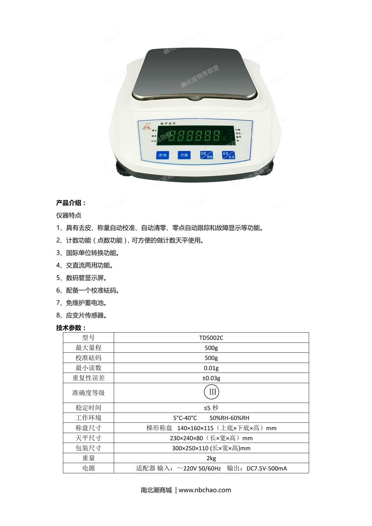 0.01G Precision Electronic Balance Tianma TD10002A Weighing accuracy 10mg0~1000g0.01±0.03g¥580.0SE -