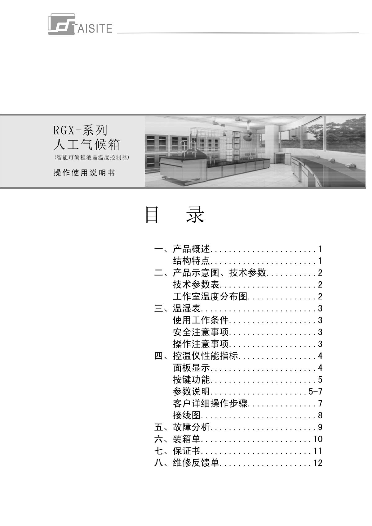 - 8TaiSiTe RGX300EF Artificial Climate Chamber Manual