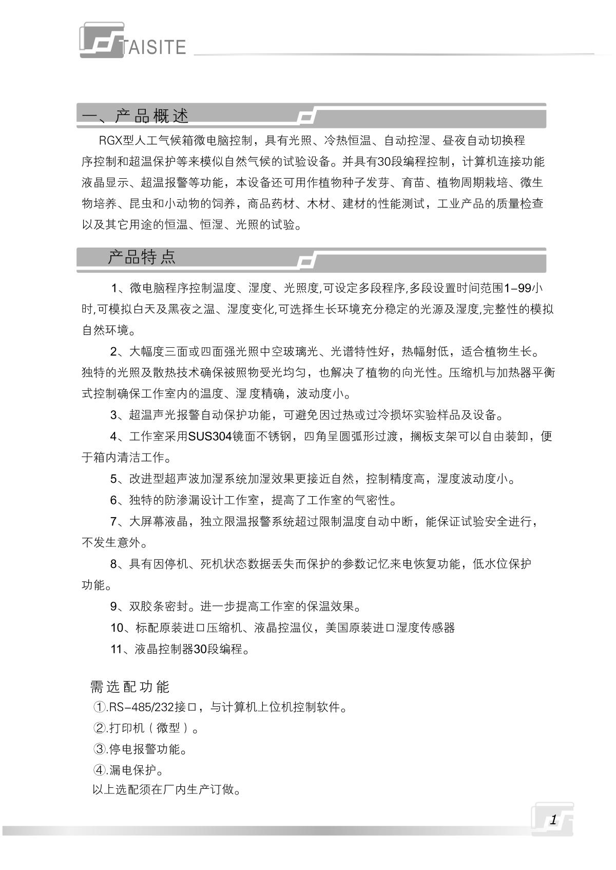 - 6TaiSiTe RGX300E Artificial Climate Chamber Manual