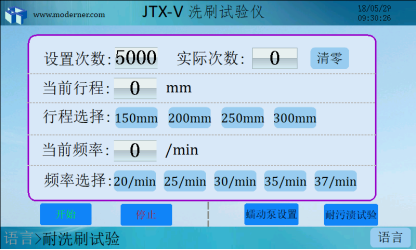 JTX-V Scrub Tester (Multi-purpose Scrub Resistance, Stain Resistance, and Wet Scrub Resistance) is based on GB/T 9266 "Determination of Scrub Resistance of Architectural Coatings" and GB/T 9755 "Synthetic Resin Emulsion Exterior Wall Coatings" Standard appendix C requirements on scrubbing test, GB/T 9780 "Test method for stain resistance of architectural coatings" standard on stain resistance test requirements, GB/T 31410 "Paint and varnish coatings are scrub resistance and Cleanliness Evaluation" is designed and manufactured for the requirements of wet scrub resistance, and is used to evaluate the scrub resistance, stain resistance and wet scrub resistance of coatings. , overlay, wood density, etc.) properties. The device performs a scrubbing test on the paint painted on the standard test plate, and the scrubbing times can be controlled and read out by the touch screen. The scrub resistance of the coating is evaluated according to the number of times of scrubbing resistance, and the stain resistance and wet scrub resistance of the coating are evaluated according to the comparison before and after scrubbing.