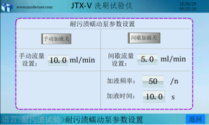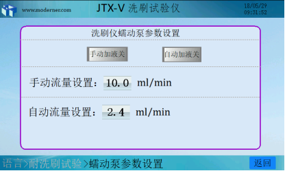 7. Turn on the automatic liquid filling switch during the scrubbing process, and the peristaltic pump will automatically drip into the scrubbing medium. If you need to wet first, you can click the manual mode. After the test plate is wet, turn off the manual mode.