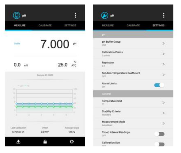 Measure pH, mV and temperature values, based on Android Operating system, 1 to 5 points calibrated, setting menu can customize 14 functional parameters, Measurement accuracy 0.002pH.
