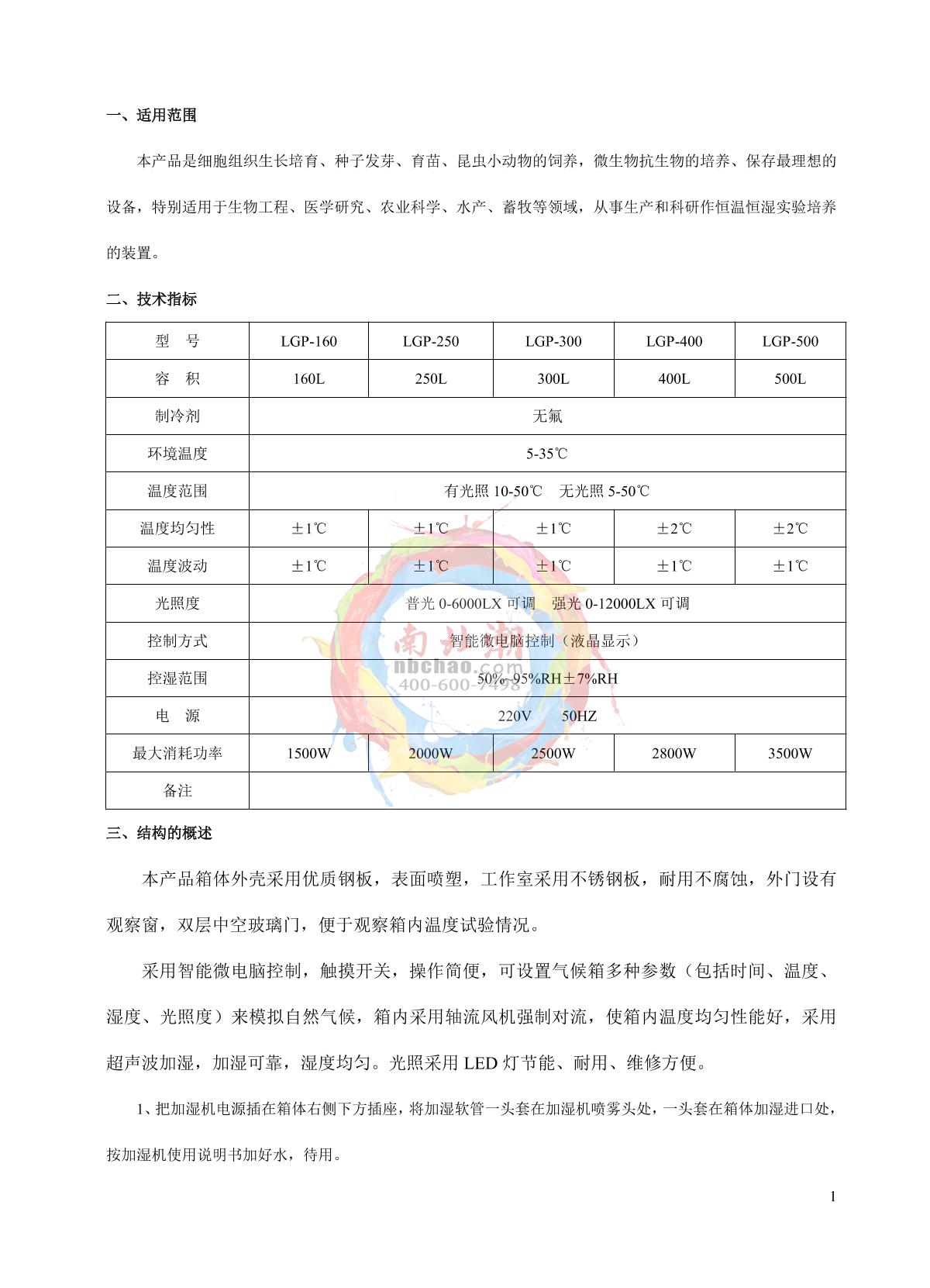 - 1sanfa LGP-500 Artificial Climate Chamber Manual