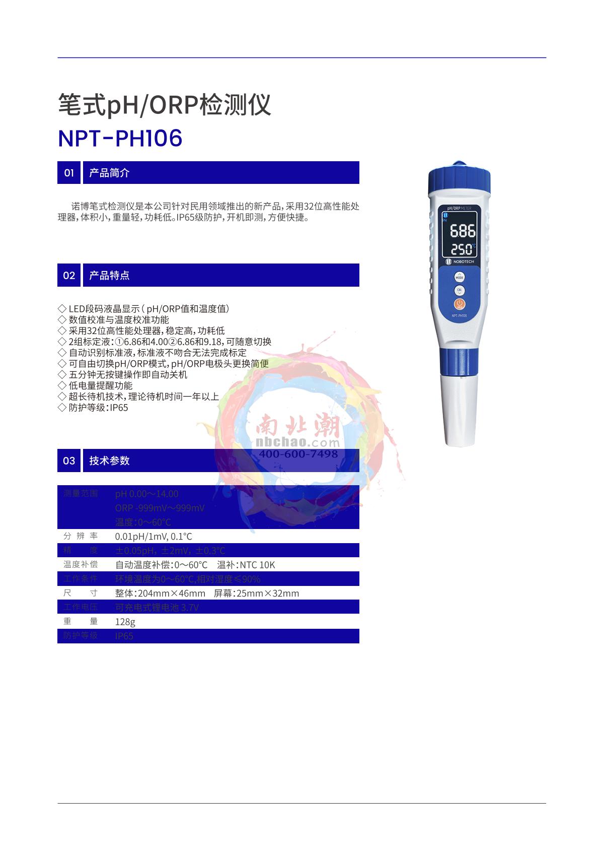 NOBOTECH NPT-PH106(pH) Waterproof pen pH/ORP meter brochure