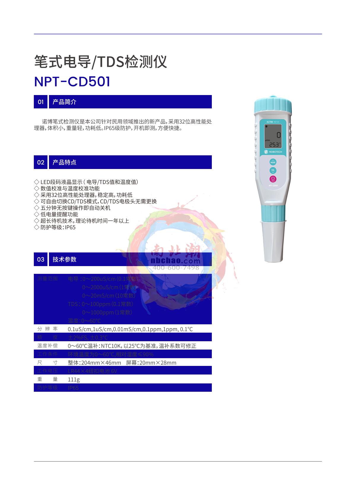 NOBOTECH NPT-CD501 Waterproof Pen Conductivity Detector /TDS brochure