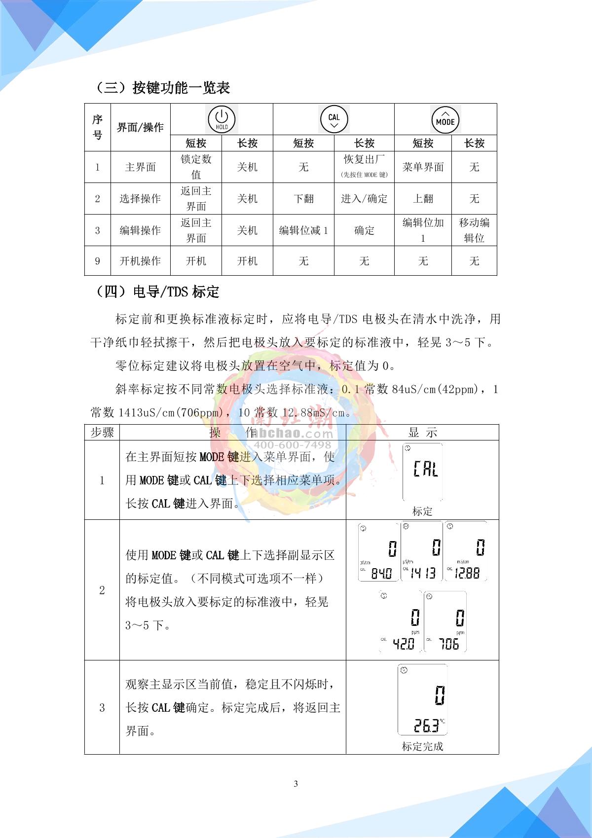 - 3Bante Bante520-DL Portable conductivity meter Manual