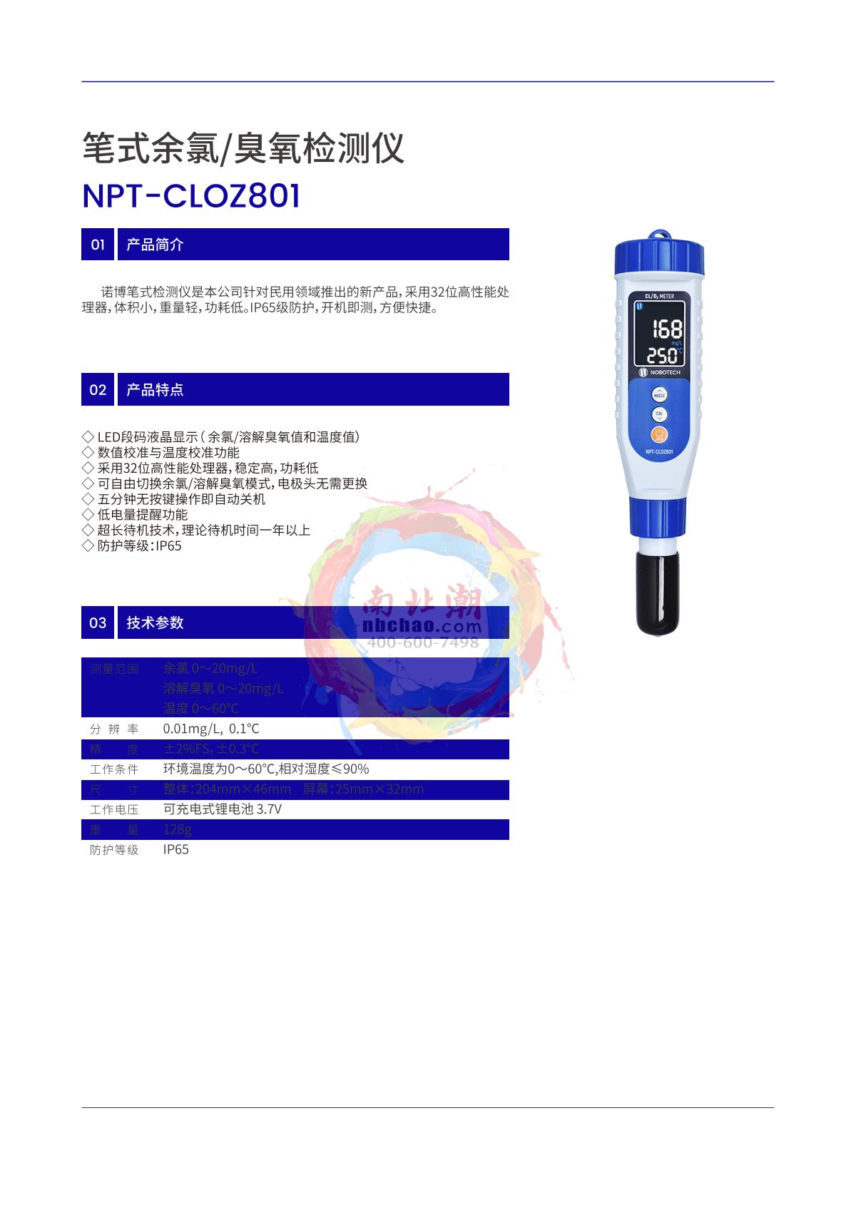 NOBOTECH NPT-CLOZ801 Pen type residual chlorine/ozone Detector brochure