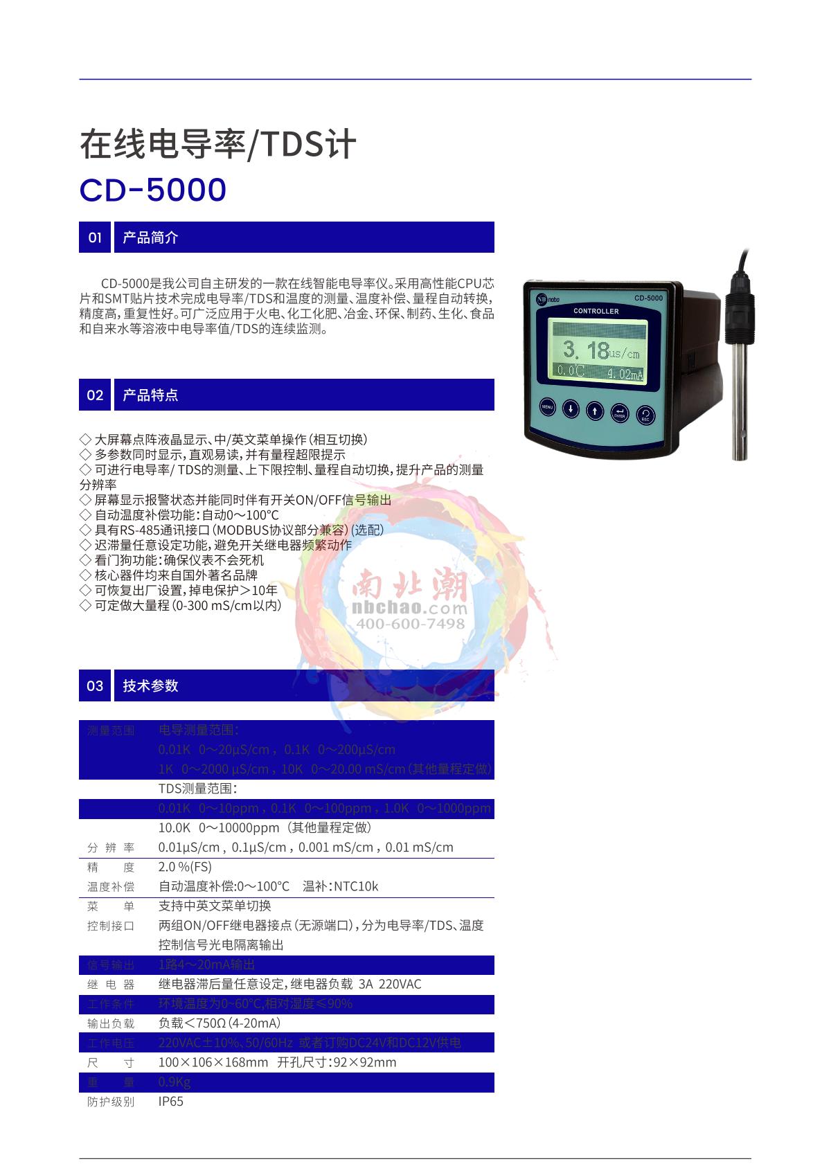 NOBOTECH CD-5000 Industrial online conductivity /TDS meter brochure