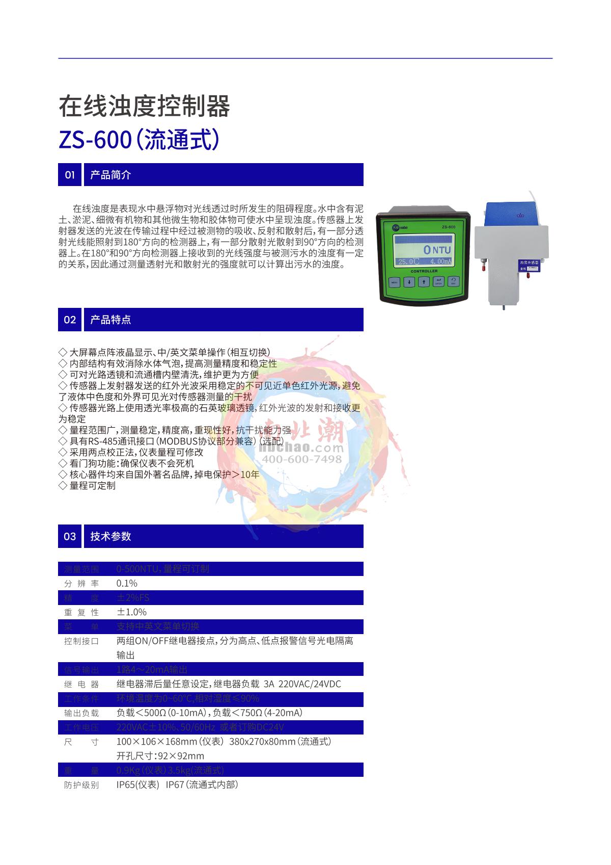 NOBOTECH ZS-600 (circulation type) Online Turbidity Meter brochure