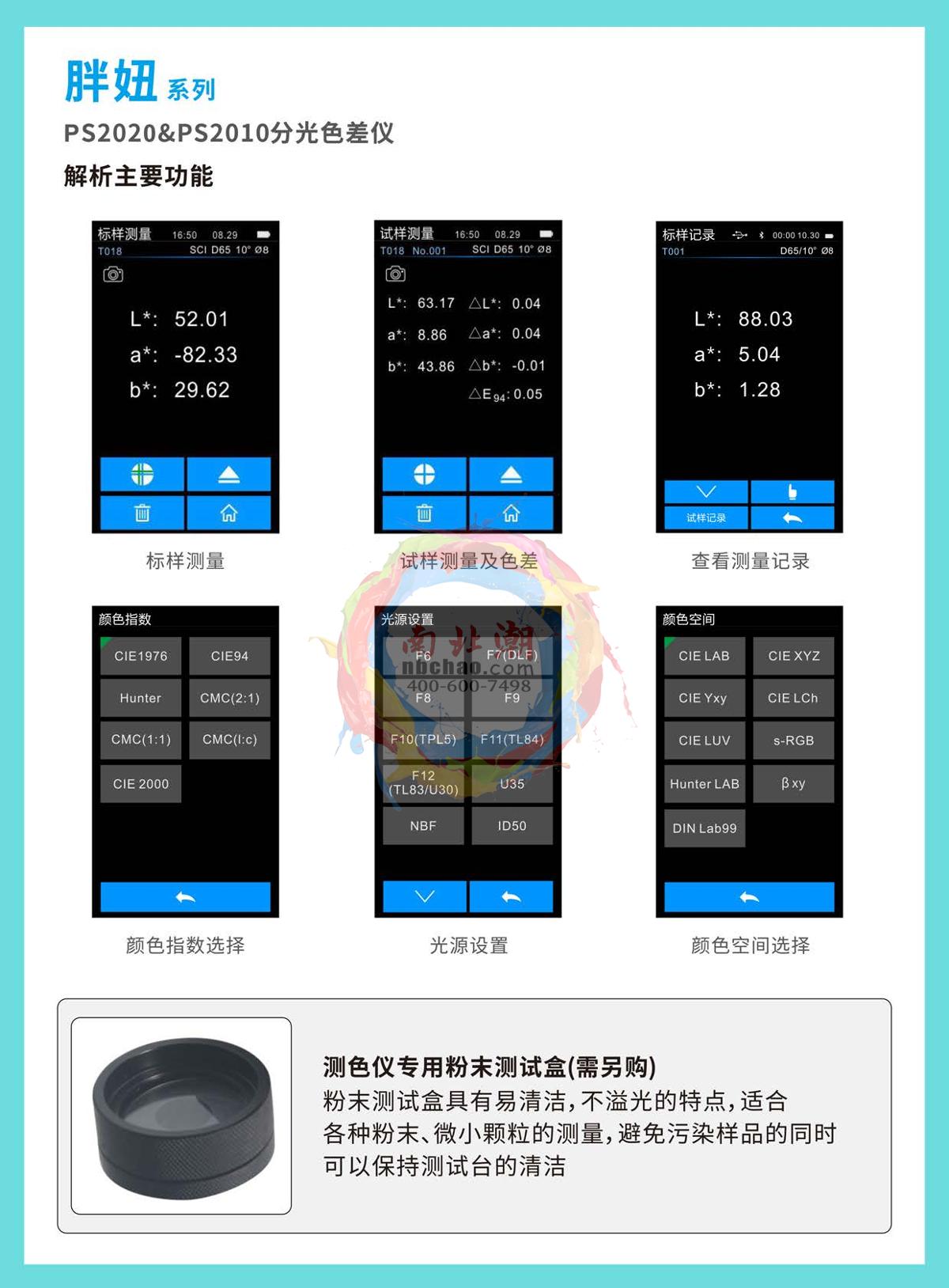 Peiseyun PSY01 color scheme cloud color difference treasure, enhanced versionD/8 (diffuse illumination, 8 ° direction reception, including specular reflection SCI), in line with standard CIE No.15, GB/T 3978F20mmLight spectrum LED light source¥980.0SE -