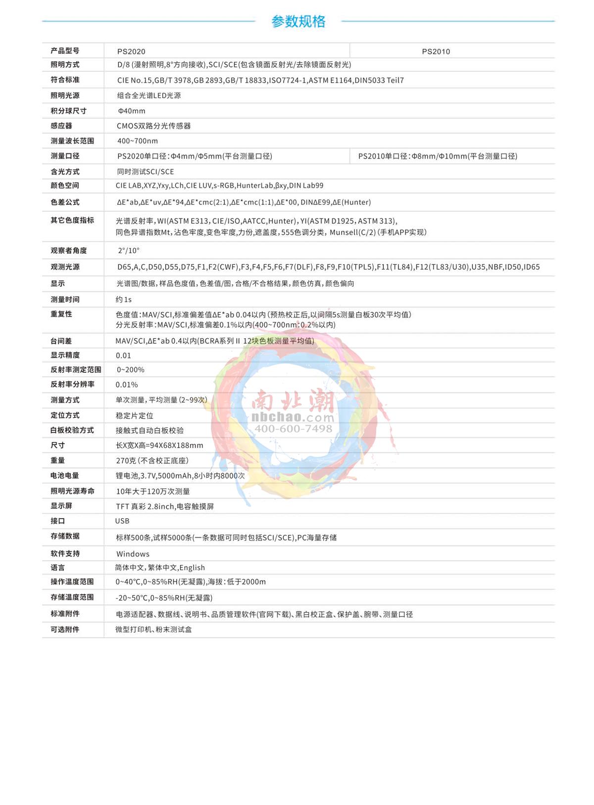 3NH PS2010 Spectroscopic Colorimeter brochure