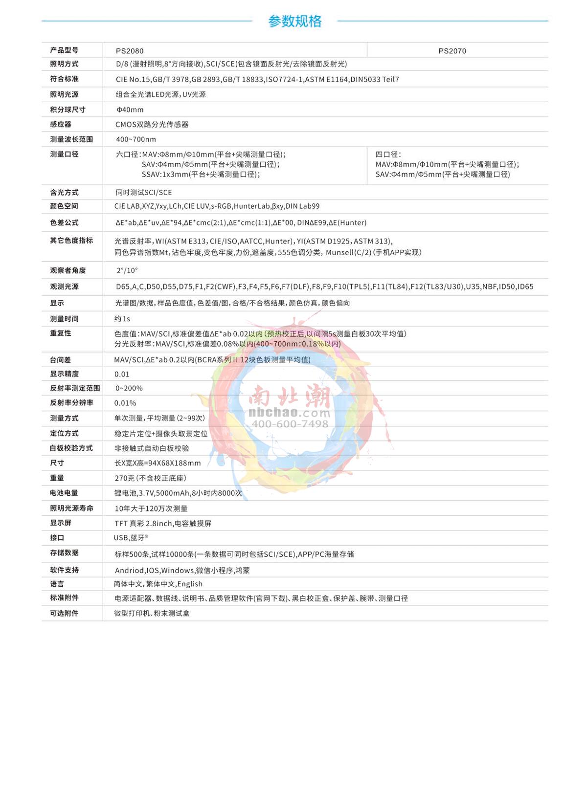 3NH PS2080 Spectroscopic Colorimeter brochure